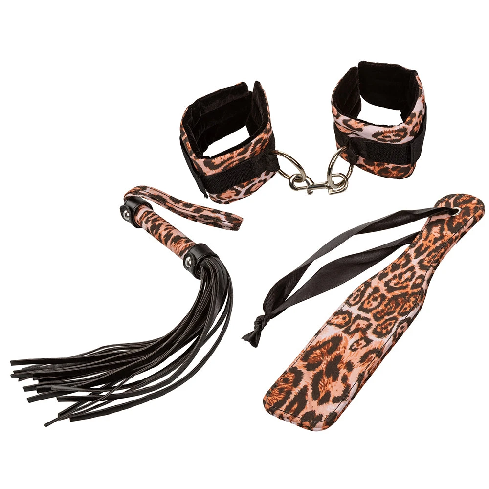 Bondage Whip, Feather Clamps & Cuffs Set in Black