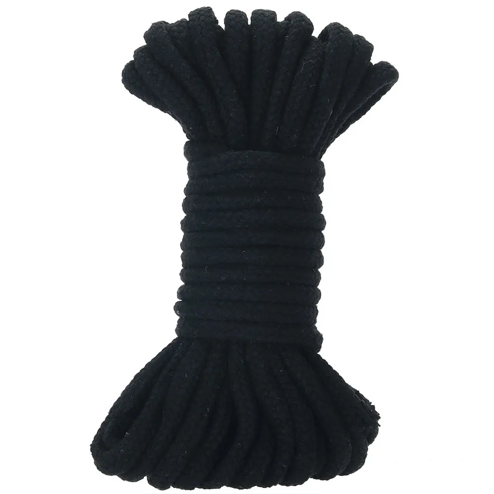 Great looking and (we can't stress this enough!) extra soft, all 32' (10M) of black rope comes to you in 100% cotton. From the most intricate knot work to the simplest of loops, it holds its shape - as well as your playmate - very, very well without slipping or tightening up. Keep in mind that a little normal stretching can occur with cotton rope.