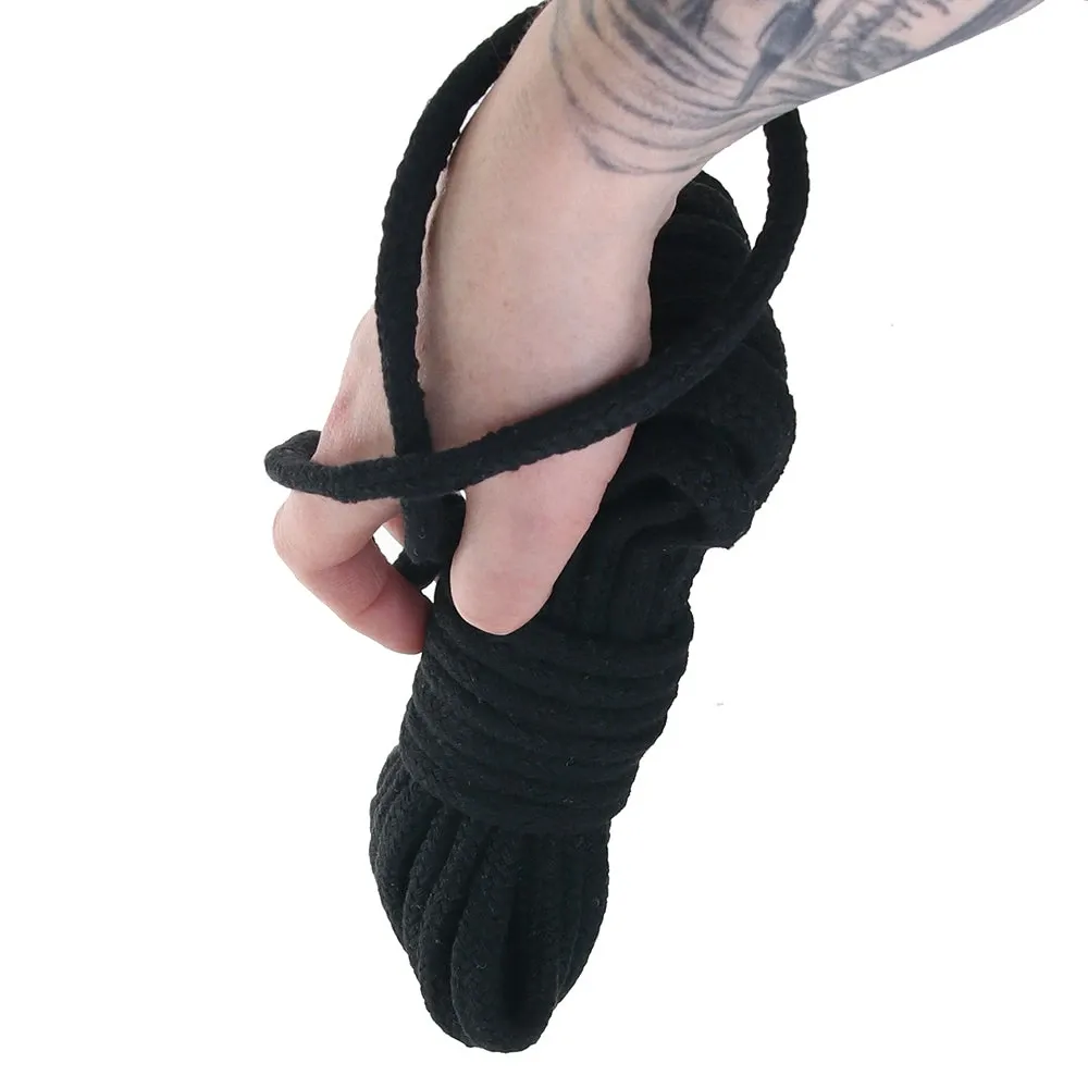 Use it to bind up the wrists and ankles, fashion it into a hog-tie shape, wrap it over the eyes as a blindfold, or loop it around wrists/ankles or over and around a headboard or bedposts. Playtime perfection! 32 feet (10M) of .3" (8mm) wide rope is included.