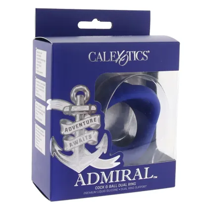 * The Admiral Cock & Ball Dual Ring is about 2.5"/6.25cm long overall, rings stretch from 1.25"/3.25cm and 1.5"/3.75cm