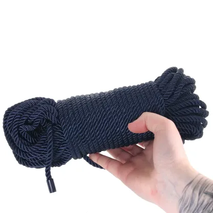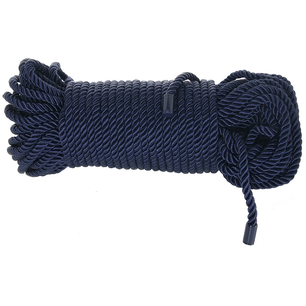 Super-soft, ultra-strong, and ready to be stretched, twisted, tied, wrapped, and bound around just about any body part, bedpost, bondage frame etc., this Rope's extra long length is tipped by glossy metal caps, making the ends easy to find and secure.