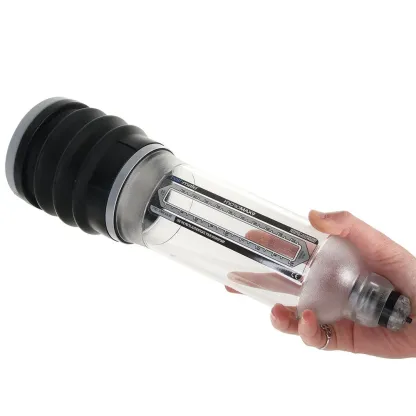 Your Hydromax9 consists of an extra sturdy polycarbonate cylinder marked off into clear measurements, a pliable, skin safe synthetic rubber gaiter base and stainless steel spring release valve up top. This pump was tailor made for penises from 7 to 9 inches (17.8-22.98cm) in erect length.