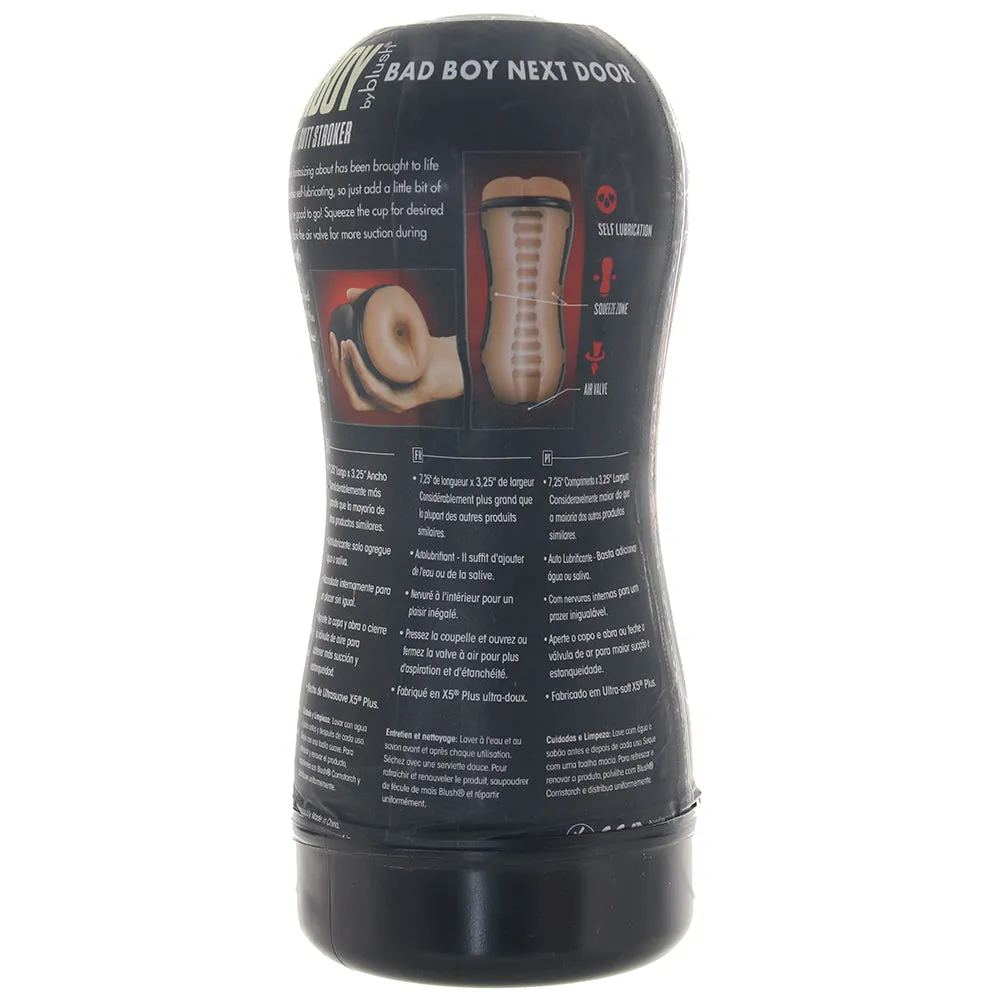 In Blush's superior TPE, The Bad Boy Next Door is body safe and free of phthalates, paraffins and latex. Clean it well before and after with warm soapy water or a good toy care fluid/foam. Please let the sleeve dry out before storage. Once the self-lube feature has run its course, this stroker is compatible with any water based lube you love.