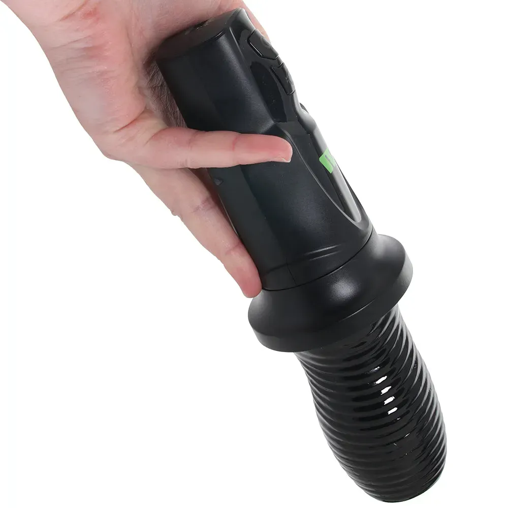 Above an easy-grip handle, 3rd Base's spinning, suuuuuper stimulating sleeve waits to take on a cock of choice. It's soft, non-detailed, and jam-packed with tiny tickling tongues.