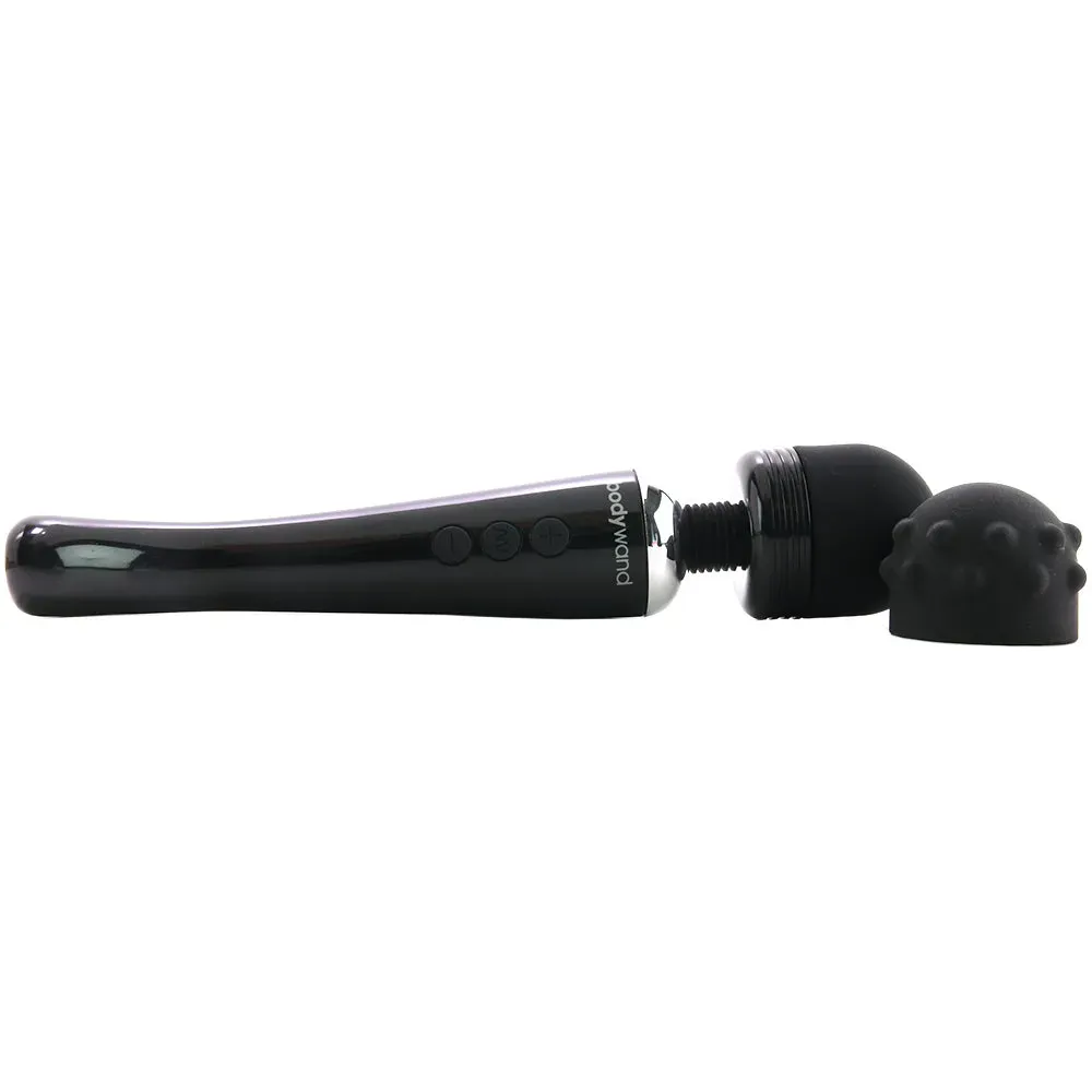 In body safe ABS plastic plus silky silicone, the BodyWand Curve cleans easily using warm soapy water or a favorite toy care fluid/foam. If a lube's in play, please enjoy a good water-based formula and avoid contact with silicone lubes and other silicone toys to keep the silicone heads in top form. Not recommended for use in water.