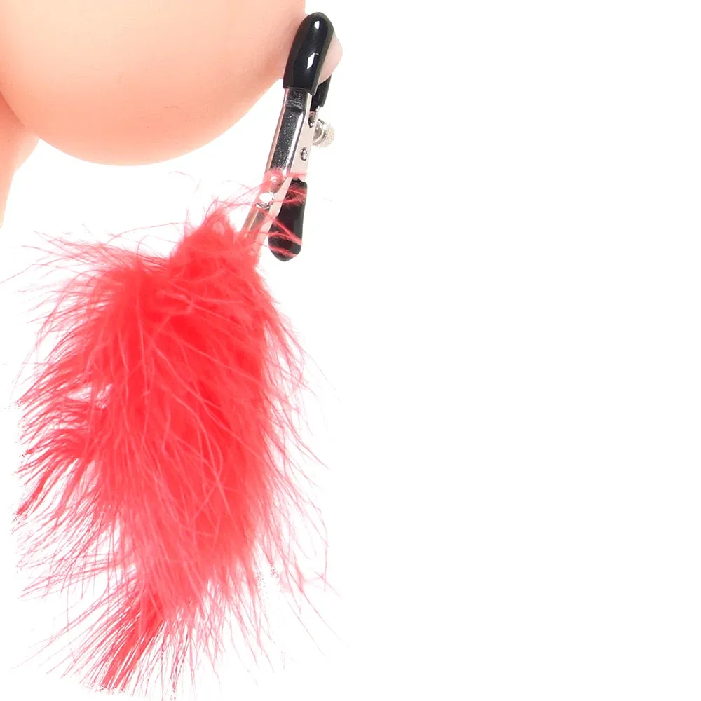 Use the classic metal cuffs to keep them where you want them, have them experiment with the swishy faux leather whip, or practice your pinch tolerance with some floaty feather nipple clamps.