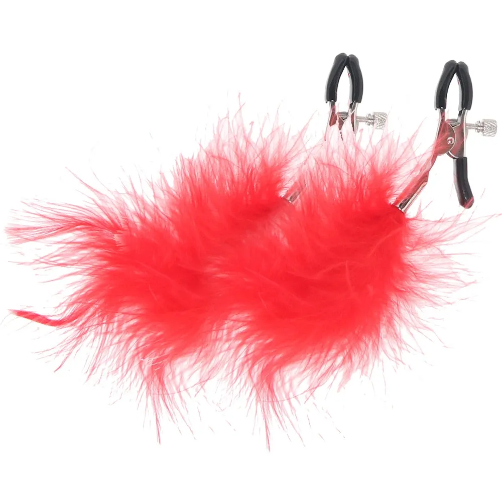 Bondage Whip, Feather Clamps & Cuffs Set in Red