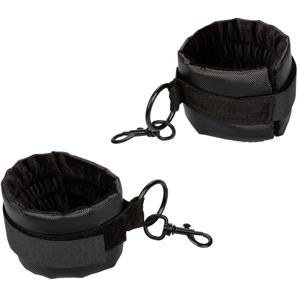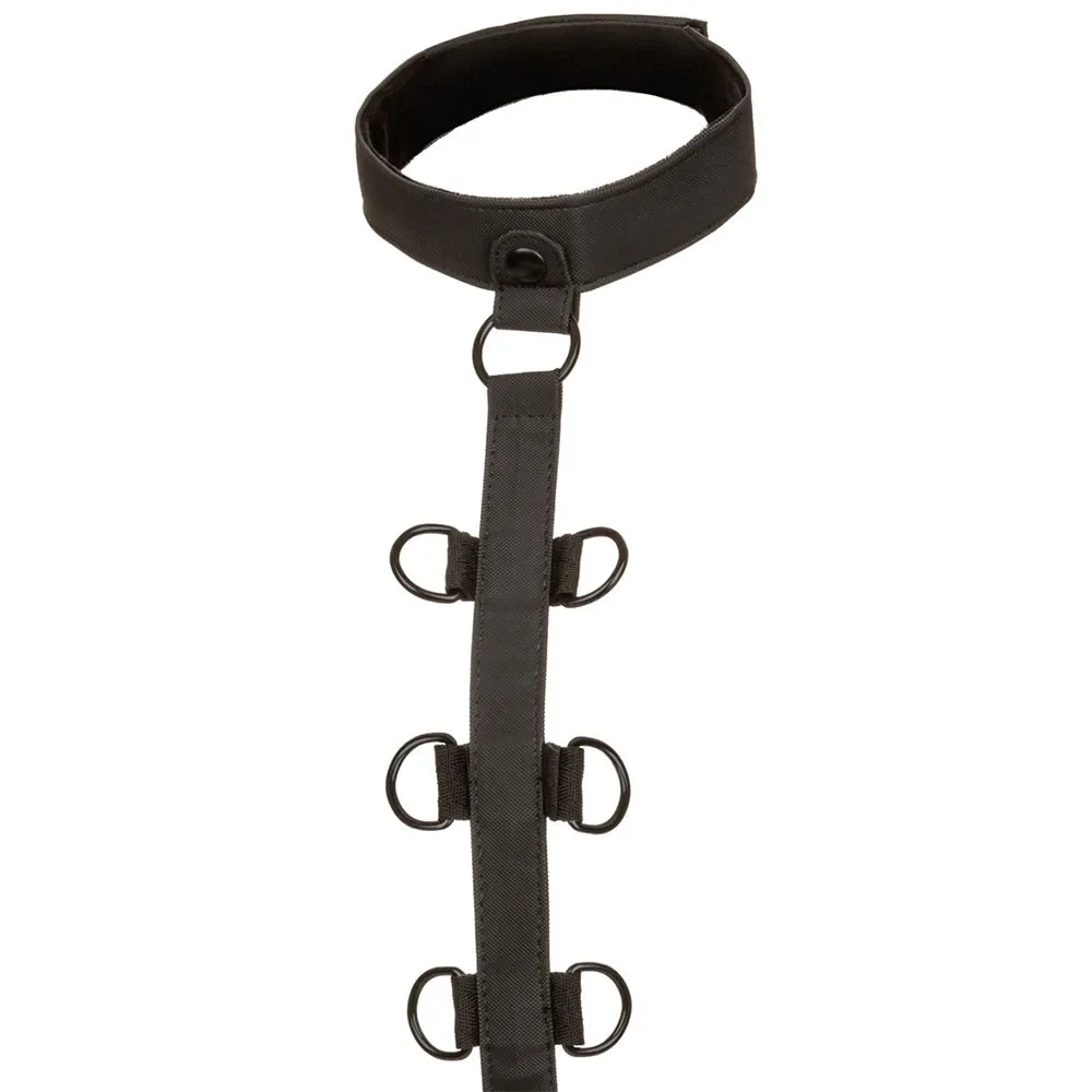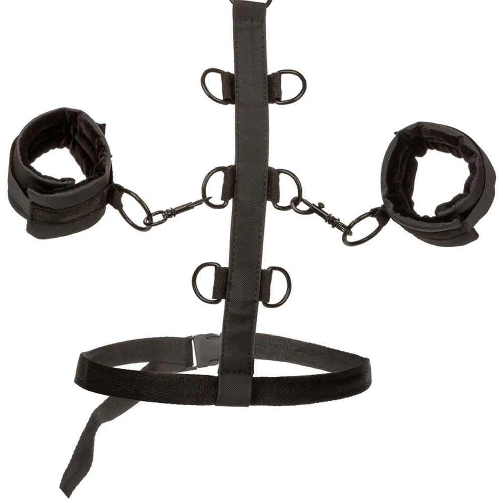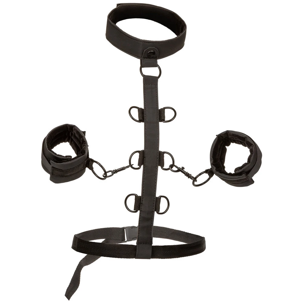 Able to be worn on the front of your/their body or behind, the Restraint fits over the neck and tightens over the waist for maximum security. A pair of universal swivel cuffs are included, all set to be clipped to six possible D-ring connectors along the vertical body strap. The best part? Not only does the Restraint do a bang-up job (hehe) as a one piece, the cuffs can be fully disassembled and used any way you see fit.