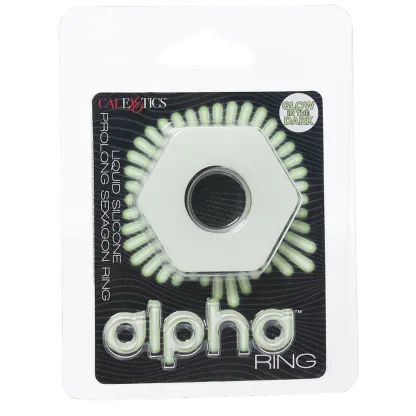 Need some super-snug (and glowing!) erection support? Looking to add a little extra texture and thickness to a favorite penis or strap-on? Maybe you're just craving some silky tension. In all these cases plus many more, CalExotics' Alpha Glow-In-The-Dark Prolong Sexagon C-Ring has you covered.