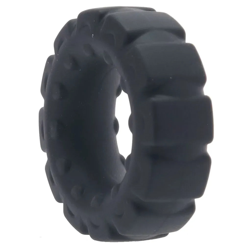 Stretch the tire-textured silicone band over any penis or penetrator to experiment with pressure, positioning, and stimulation; wear it over your fingers, or try it out (carefully) on a scrotum. If a penis is involved, the Tread can help support and maintain its owner's erection and can even upgrade the intensity of their orgasm.