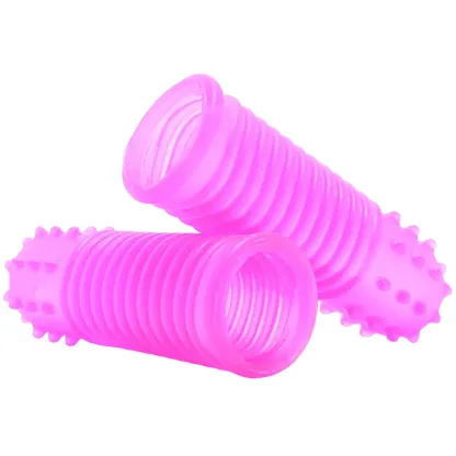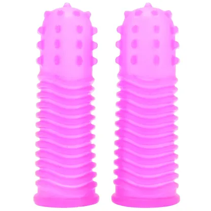 Slip one or both of the pink silicone sleeves over fingers or thumbs to intensify anal or vaginal penetration- although they're definitely not meant to be used in place of a condom or finger cot, they do provide a bit of a barrier. You can even slide a Finger Tickler over the shaft of a slender vibe or favorite dildo for some extra sensation.