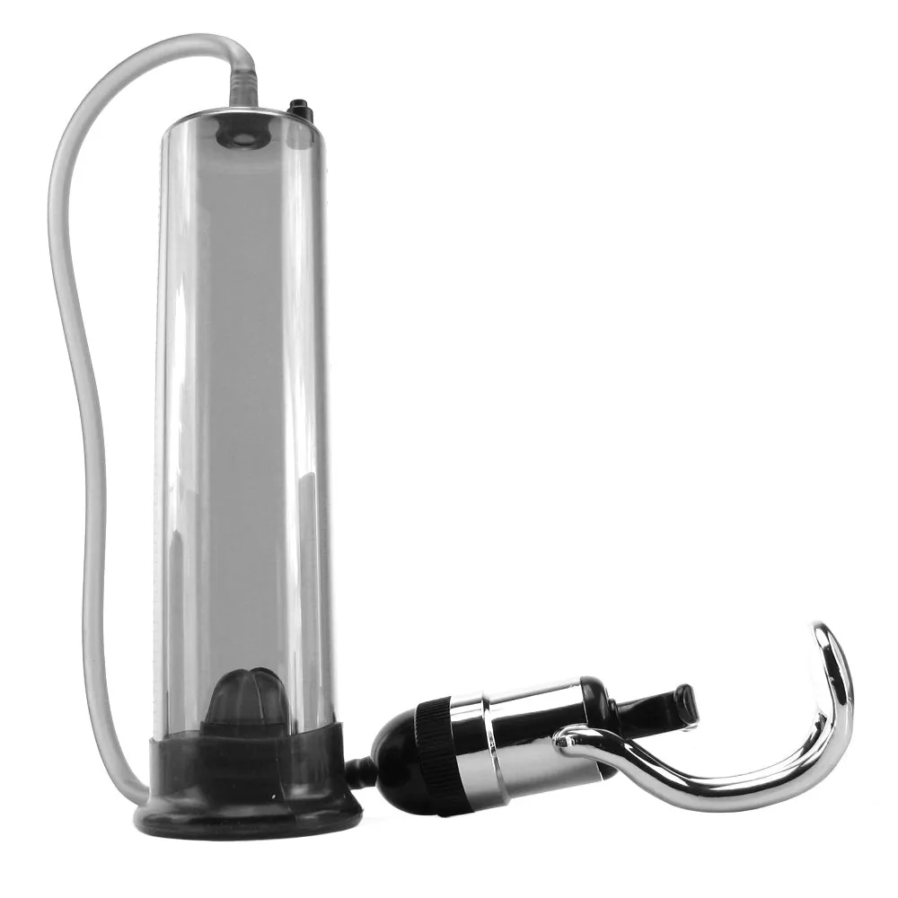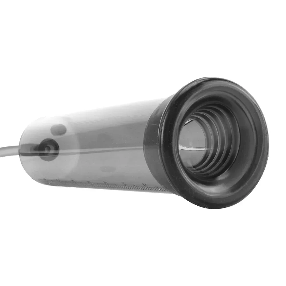 Fully encasing the penis, the MR's interior length is approximately 9 inches (23cm) at default- convenient graduated measurements are etched up the side for precise monitoring. Once the penis is placed through the silicone-circled mouth, simply squeeze the handle- the sleek, curvy shape needs just two fingers to operate. A quick release button placed within easy reach above the cylinder dissolves interior pressure instantly.
