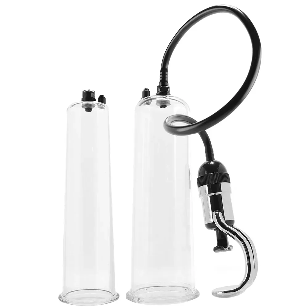 Helping enhance erection, improve endurance and feeling amazing all at once, these 2 simple suction pumps share a uniquely ergonomic Master Grip finger pull handle, voyeur-friendly (magnifying!) transparency, and the ability to disconnect from the air hose for lots of sexy freedom of movement.