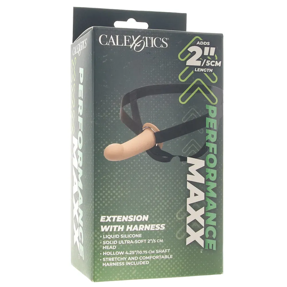 *The Extension is 6.25"/16cm long overall, 4.25"/10.75cm through the hollow center and about 2"/5cm in inner diameter. Harness fits most.