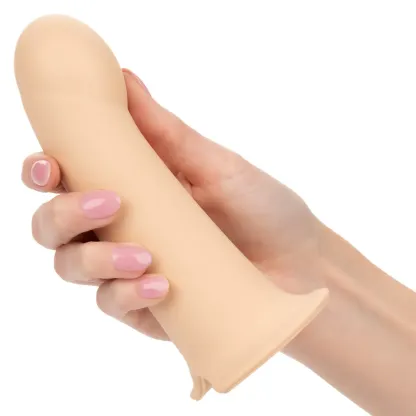 Extra plushy at the tip and super-silky all the way through, the Extension is hollow through the center, and features a specially contoured base that'll fit comfortably against your/their body. Ready to be enjoyed by anyone any body and just about any toy, Maxx has potential as a pack and play dildo, too. The liquid silicone head adds a full two inches of overall length, plus extra thickness.