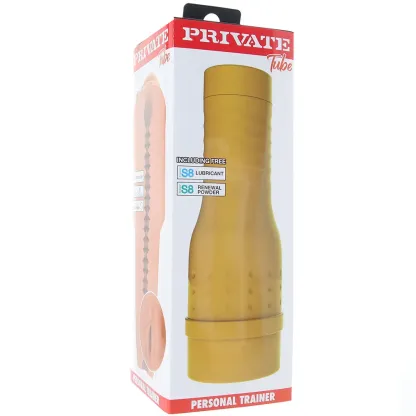 Something to note is that the Trainer (and all Private Tube strokers) sleeves require a LOT of lube to help things glide along smoothly, so make sure to stock up before your session- a good water-based lube is your best bet, please avoid both oil and silicone formulas, as they can break down the material.