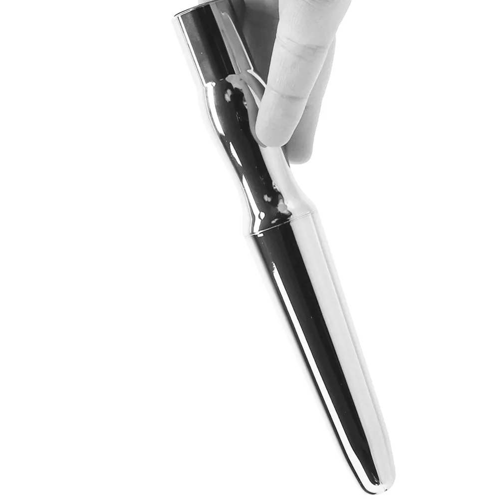 Straight, sturdy and tapered for comfy penetration, the slick metal-plated Probe is all set to seek, find and deeply stimulate your/their back door. Cue the first of ten intense vibration modes with a simple button at the base.