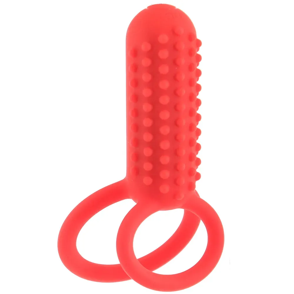 Featuring tons of bumpy texture and lots of pliable stretchiness, the Dual's two rings loop sturdily over the base of your or your partner's shaft and balls, or the base of a dildo/strap-on. If a penis is in play, the double ring design adds lots of sexy, erection-boosting firmness and support, but in either case, it's going to feel great for everyone involved.
