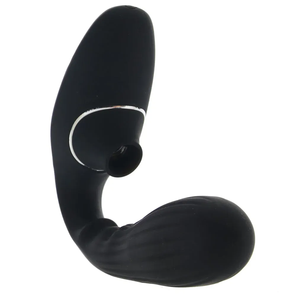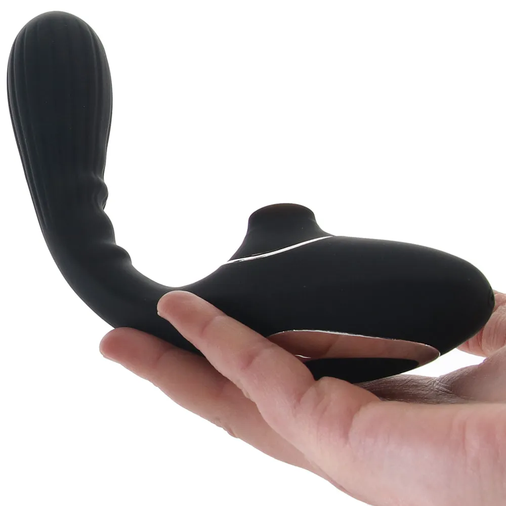 Not only does this black silicone wonder toy offer you ten modes of gently sucking, pulsing air stimulation and ten modes of throbbing inner vibration, it also flexes and bends to fit your unique curves just right. Love!