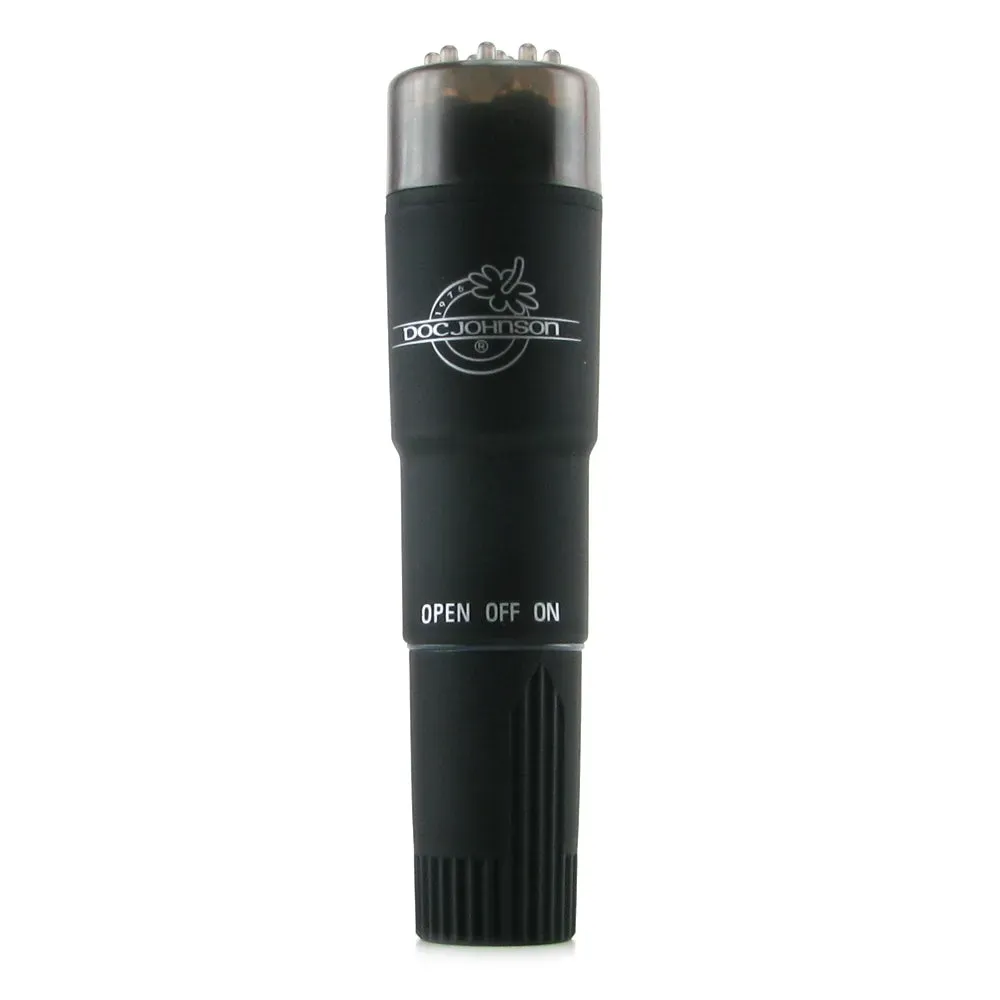 Featuring the same petite 4 inch size and manageable styling that makes the original perfect for traveling, the Black Magic version has an added velvety smooth coating called Velvet-Touch that feels amazing against your skin. There's a removable nubby-textured cap to place over the tip for some intense stimulation, and this little wonder takes just 1 AA battery (sold separately). There's nothing fancy about this massager, a simple on and off dial at the base makes it foolproof, and ready to make you feel good. Enjoy!