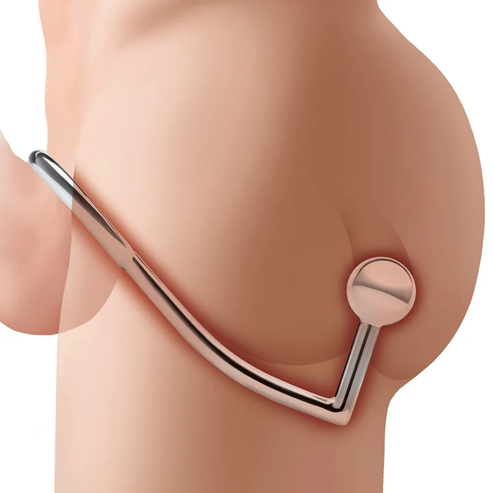 The Anal Hook & Cock Ring is one part beaded anal penetrator and one part penis/dildo ring. The namesake 'hook' comes courtesy of a very dramatic angle that tilts a big stainless steel bead right up against your prostate, G-spot, A-spot, etc.