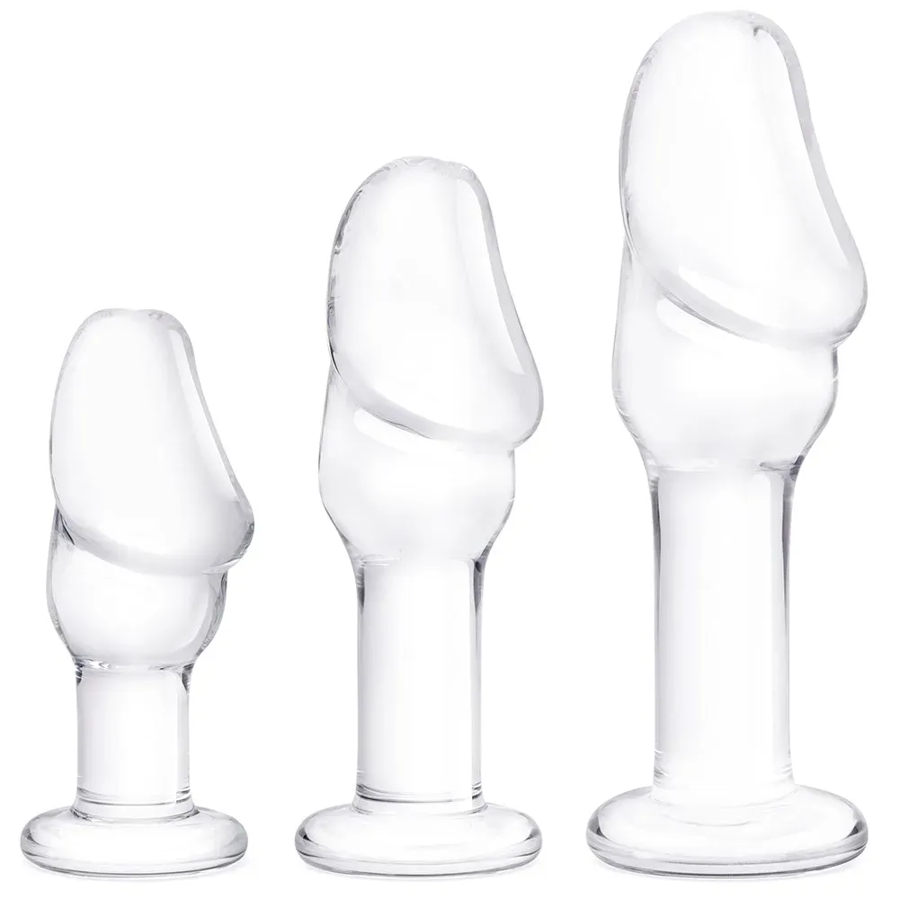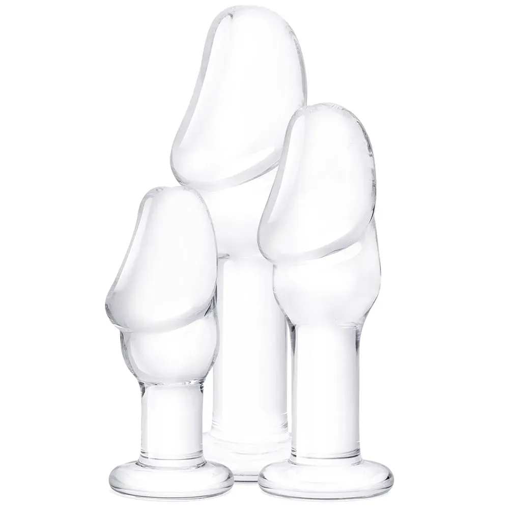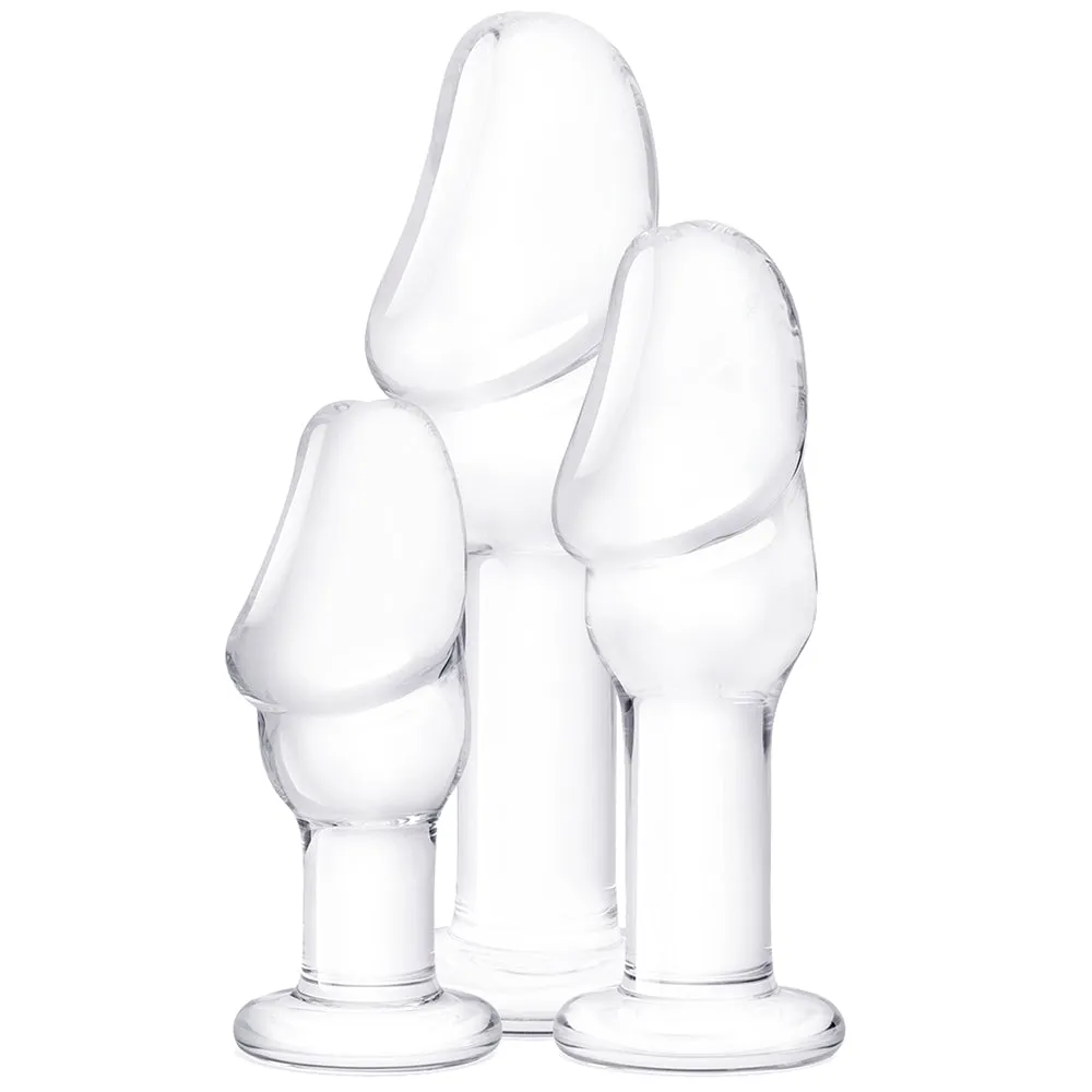 In hypoallergenic pyrex glass, the Kit is body-safe, easy to clean, and good to go with any lube you love. Wash your Plugs well before and after playtime with soapy water or a favorite toy care fluid/foam and store them carefully to keep the slick surface scratch and chip-free.
