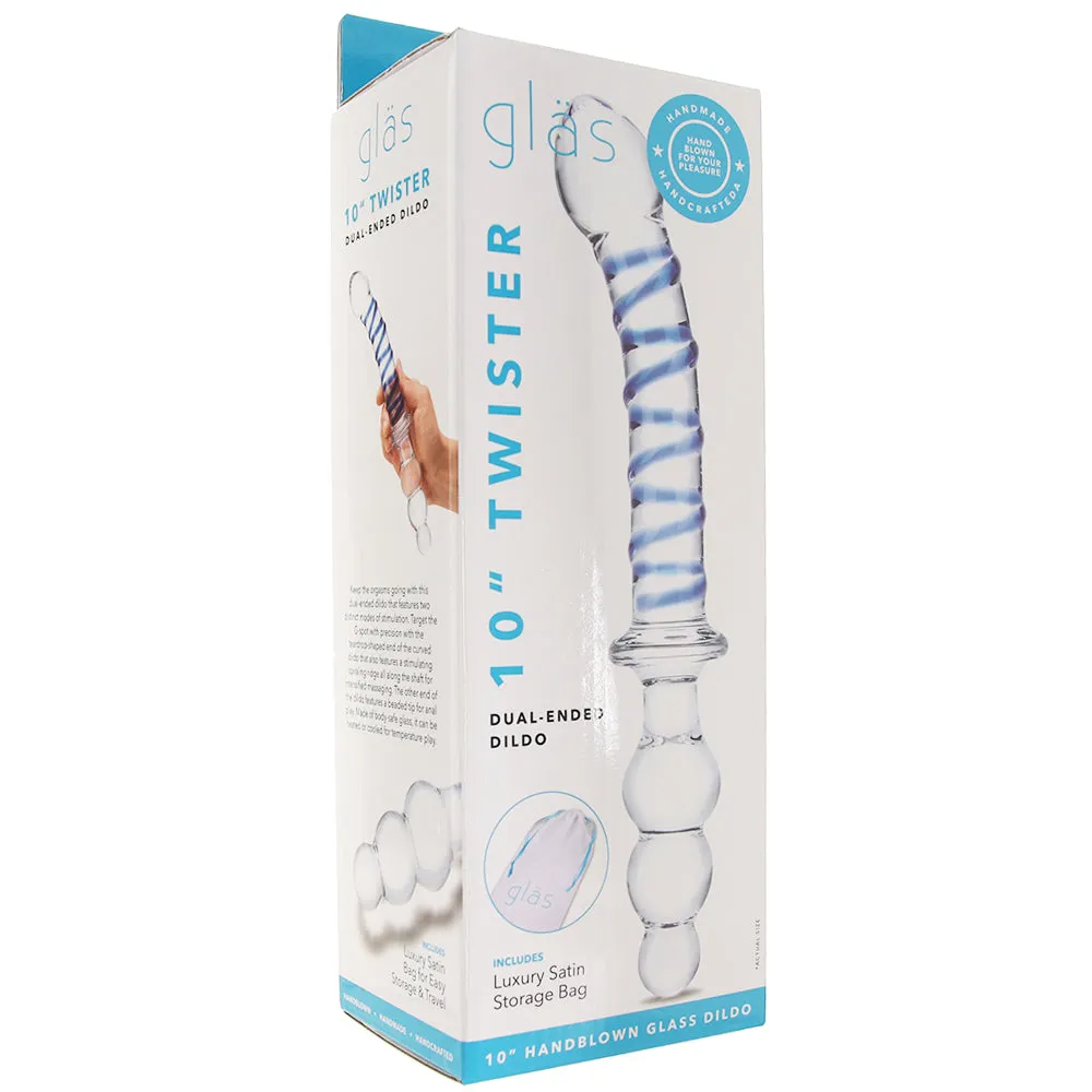 In nonporous, hypoallergenic, shatter proof Pyrex glass, Twister comes to you and yours in one of the safest, most body friendly materials ever to exist. If you take good care of your glass toy, it could last a lifetime. Luckily, glass is also very low maintenance. Warm water and mild soap will keep things squeaky clean before and after playtime, but you can also boil or bleach your glass toy for super-thorough sanitizing. Store carefully to avoid chipping or scratches. Twister is safe to use with any favorite lubricant.