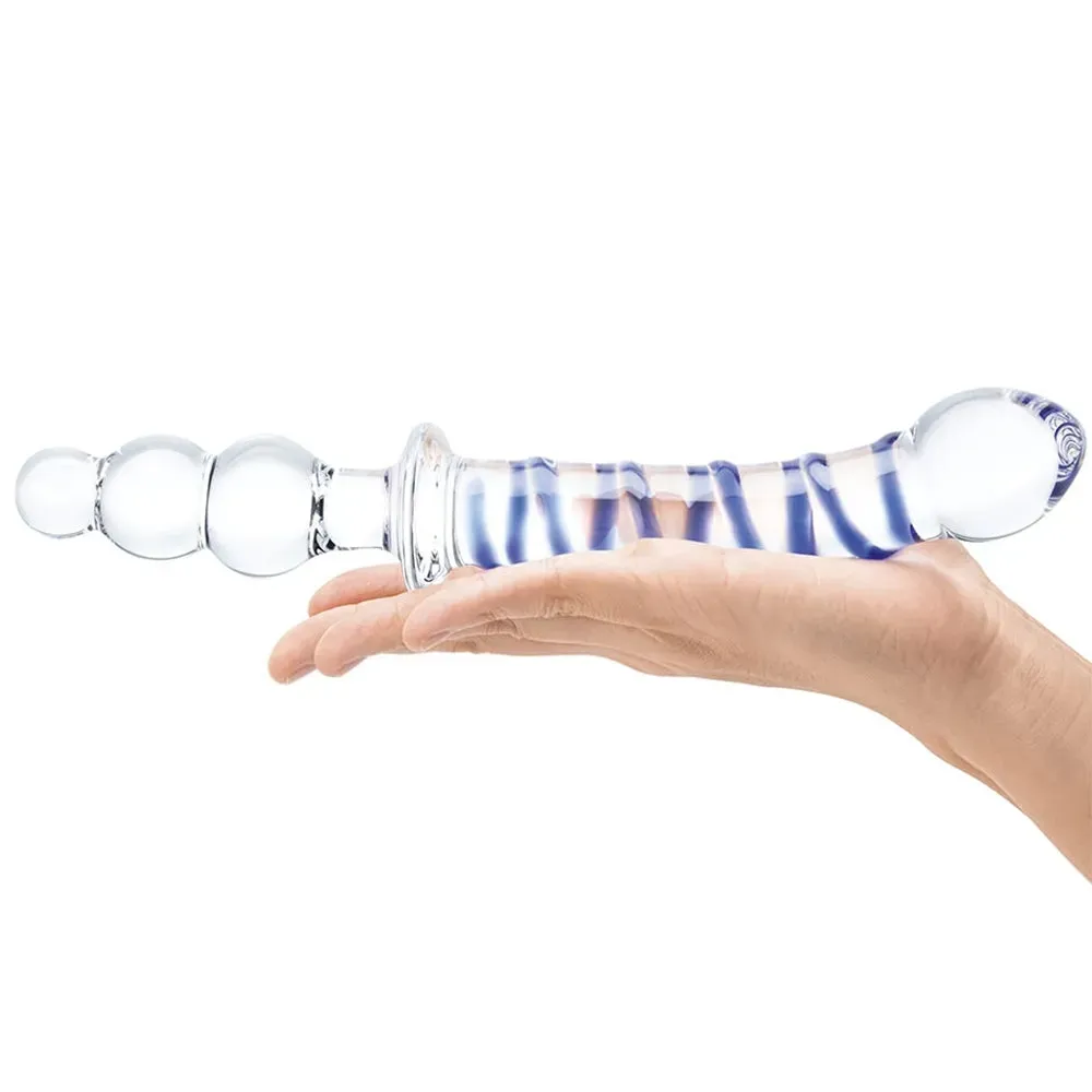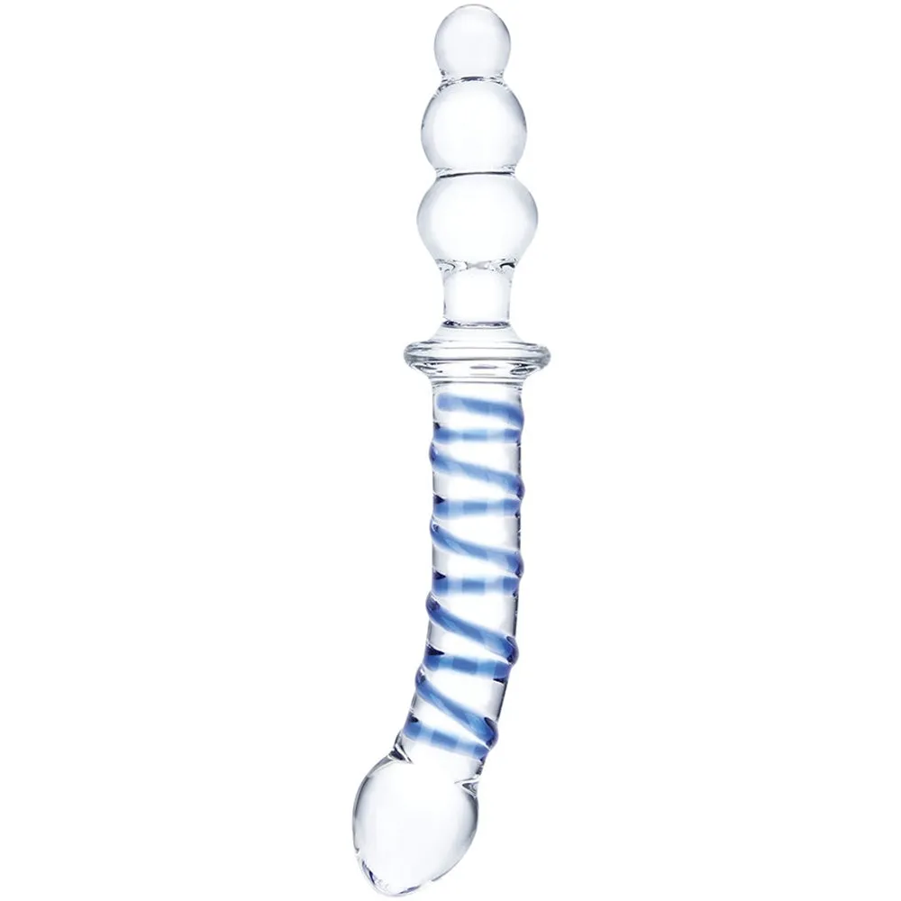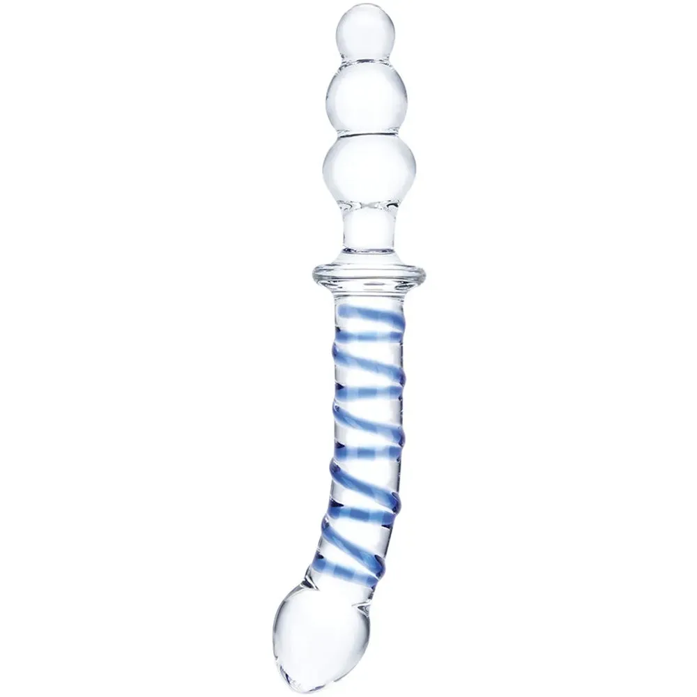 How a person could drag their eyes away from this dildo's ripply cobalt spirals and curvy, sweet-spot seeking shape(s) long enough to read this description is a mystery, but if you did, congratulations! In firm, temperature receptive glass, gläs' Twister is much more than just a pretty face - or pretty penetrator.