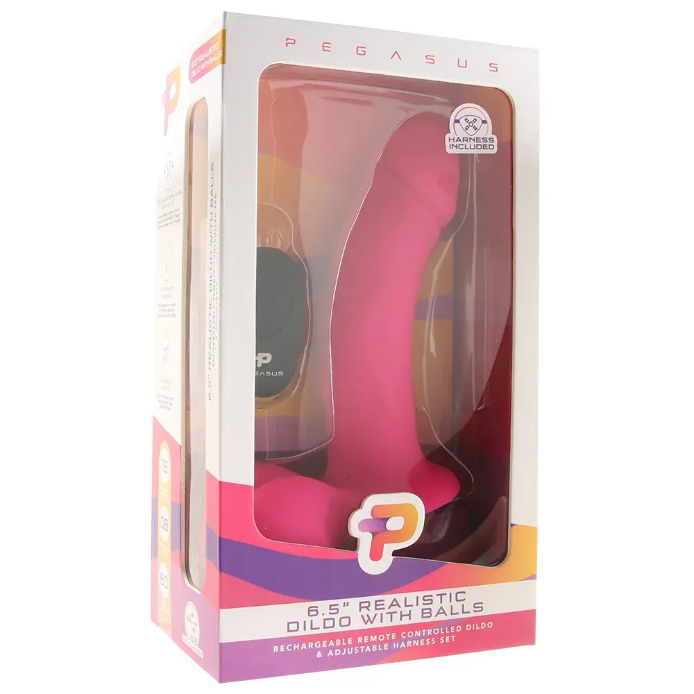 * The Pegasus Realistic 6.5" Ballsy Vibrating Strap-On Set fits up to a 67"170.2cm waist. Included O-ring sizes are 1.25", 1.75" and 2.0"