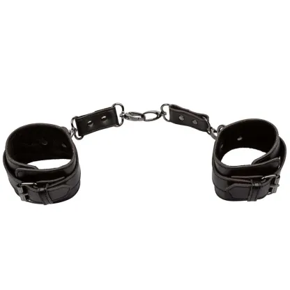 Aside from their stellar appearance on and off, these jet-black cuffs feature sturdy buckle closures, swivelling universal clasps and easy compatibility with lots of bondage or play gear you might already own and love. Connect 'em together or add tethers, hogties, bed bondage straps and much more.