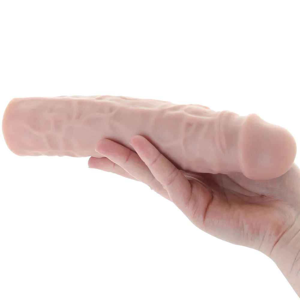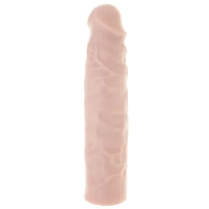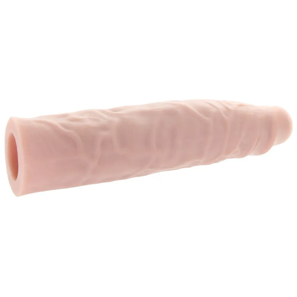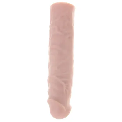 Slipping easily over the shaft, the sleeve stretches easily to cover the majority of your/their shaft, depending on individual size, of course. Very full in terms of coverage, the 3 Inch naturally protects the sensitive penis tip from over-stimulation. Pliably stretchy and extremely comfortable, the Extension slides on easily with just a little lube. Trim it to fit, if needed