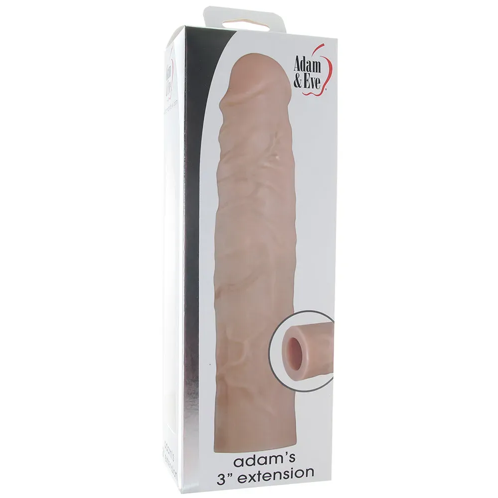In stretchy, body safe TPE (elastomer), Adam's 3 Inch Penis Extension is easy to clean before and after playtime with some warm soapy water or a good toy care fluid/foam. If you'll be using a lube, please stick with a favorite water based formula. * Adam's Extension is 9.25"23.5cm long, 2"/5.08cm wide and 6.25"/16cm penetrable.