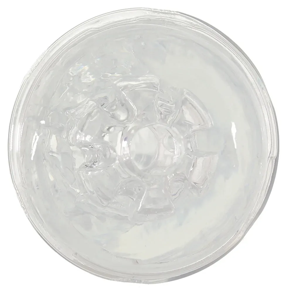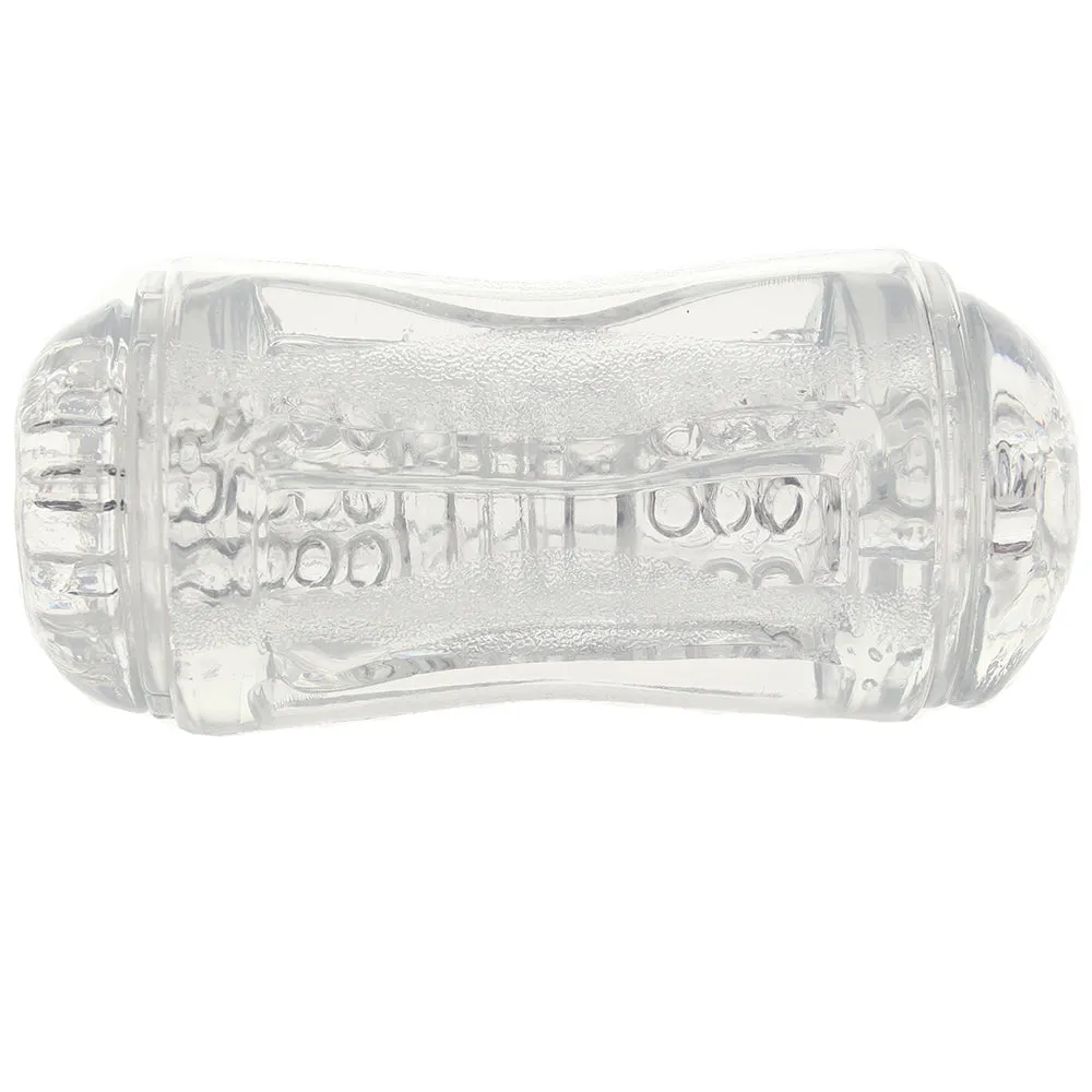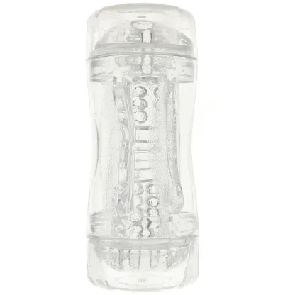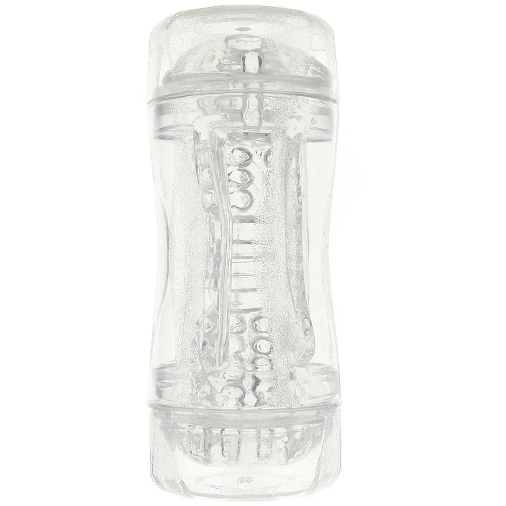 Offering up two points of entry, both neutral, the Double Fantasy also features two distinct textures, one for each side. The ultra soft sleeve in crystal clear, magnifying jelly grips and clings naturally - keep one of two included caps in place over the side you're not using to maximize friction.