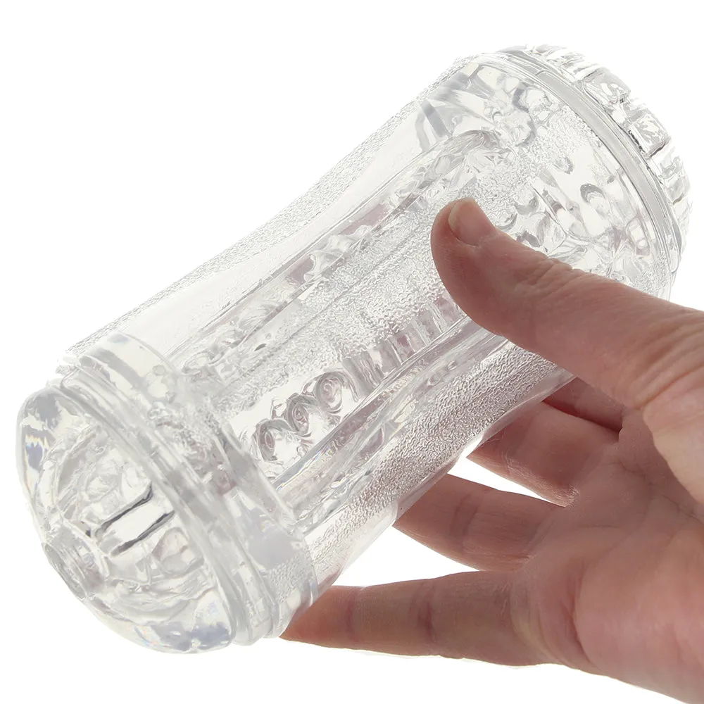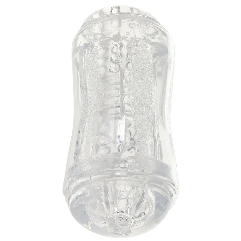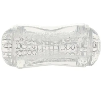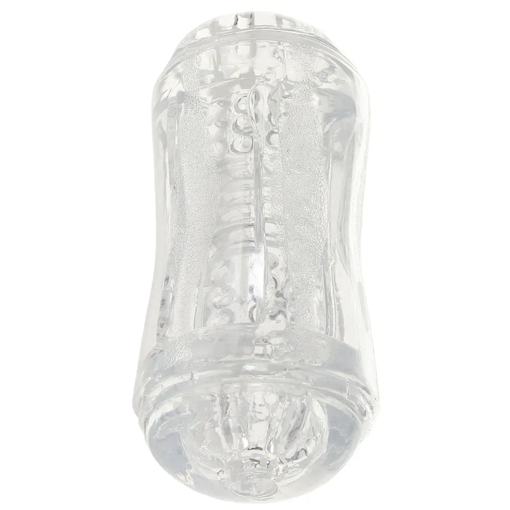 Offering up two points of entry, both neutral, the Double Fantasy also features two distinct textures, one for each side. The ultra soft sleeve in crystal clear, magnifying jelly grips and clings naturally - keep one of two included caps in place over the side you're not using to maximize friction.