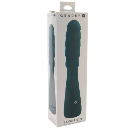 Here's a fun fact about scorpions: some of these stingy little creatures glow under ultraviolet light - as if they weren't creepy enough. Don't worry; Gender X's Scorpion vibe has zero sting! What it does have is twelve rumbly vibration modes and a wide-ribbed shape that's all set to seek and find your/their sweet spots.