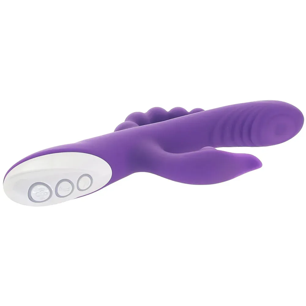 There aren't many (if any) sexy situations that vibration won't improve. There are even less (as in none) that won't become wildly more pleasurable with a very special thumping feature AND some booty tickle added in to all your favorite vibrating sensations. Agree? Then say a very happy hello to the Evolved's Lick Me Triple Stim Rabbit Vibe.