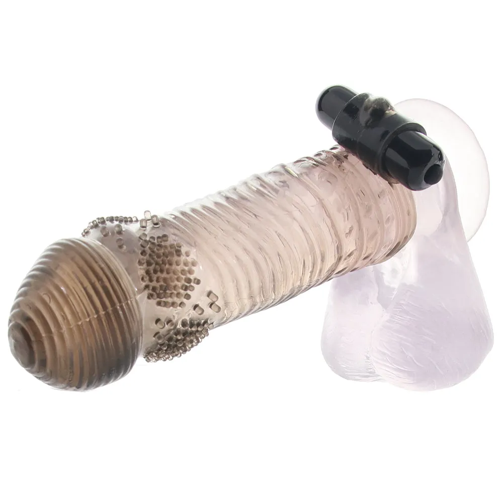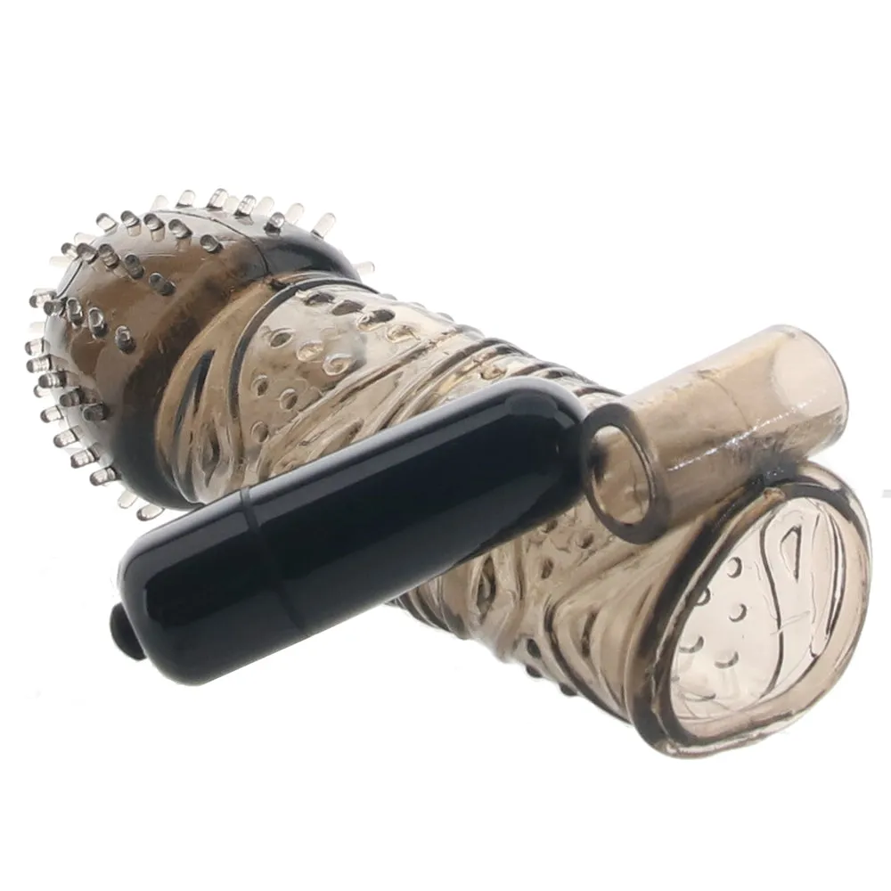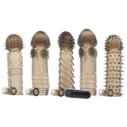 Any of the five sleeves will slip easily into place - with the help of a favorite lube - over a penis, strap-on or toy. If you (or they) are in the mood for vibration, pop the included bullet into a holster at the base of four of the sleeves. The fifth doesn't fit a vibe, but works wonders solo.