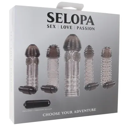 Forget pumping, pills and complicated enlargers - just slip on one of Selopa's Choose Your Own Adventure sleeves for extra length, more texture and (optional but highly recommended!) vibration.