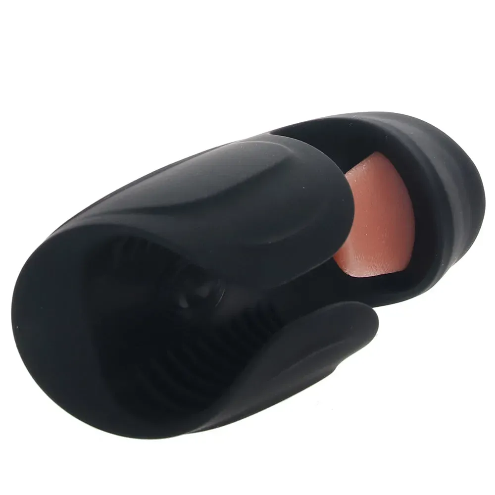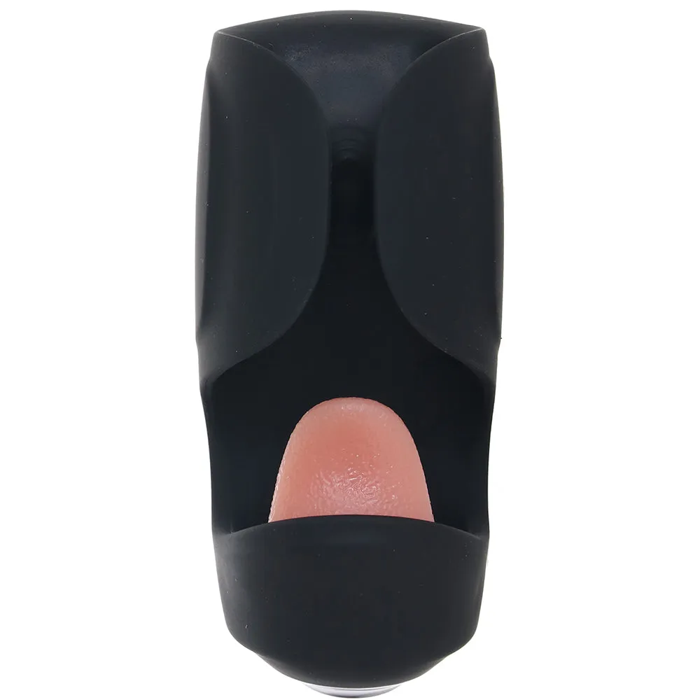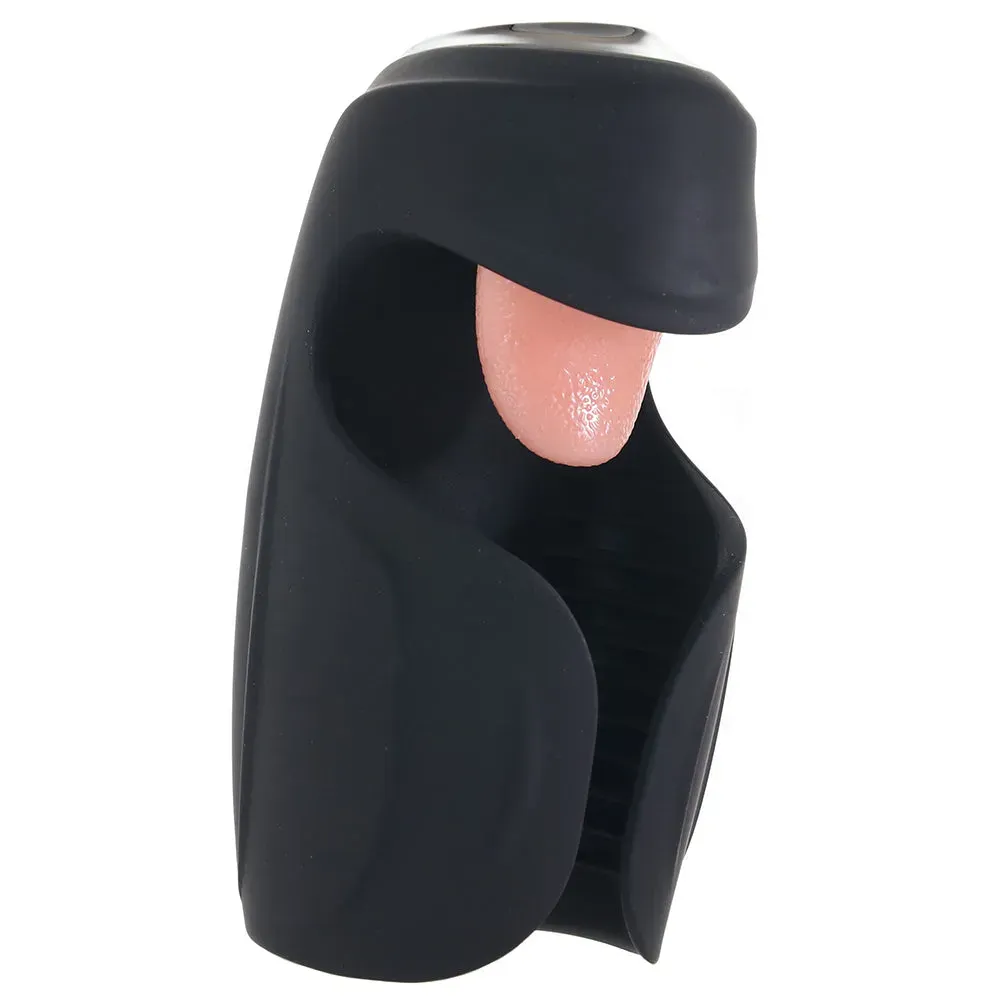 This ready-to-rock (and thump, and lick) masturbator features a) a soft, open-faced silicone sleeve that you can squeeze to your exact specifications, b) ten modes of rumbly vibration and thumping stimulation inside and c) ten patterns of unexpected and delightful licking thanks to the tongue up tip. That's a lot of stuff!