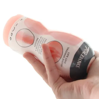 Starting off with a detailed pussy entrance, the pink Pop & Toss comes tucked into a firm(er) plastic case. Just pop it out if you want more control over snugness. Whether it's inside the travel-friendly casing or not, the soft sleeve clings tight all the way to the end, and feel amazing with lots of slippery lube.