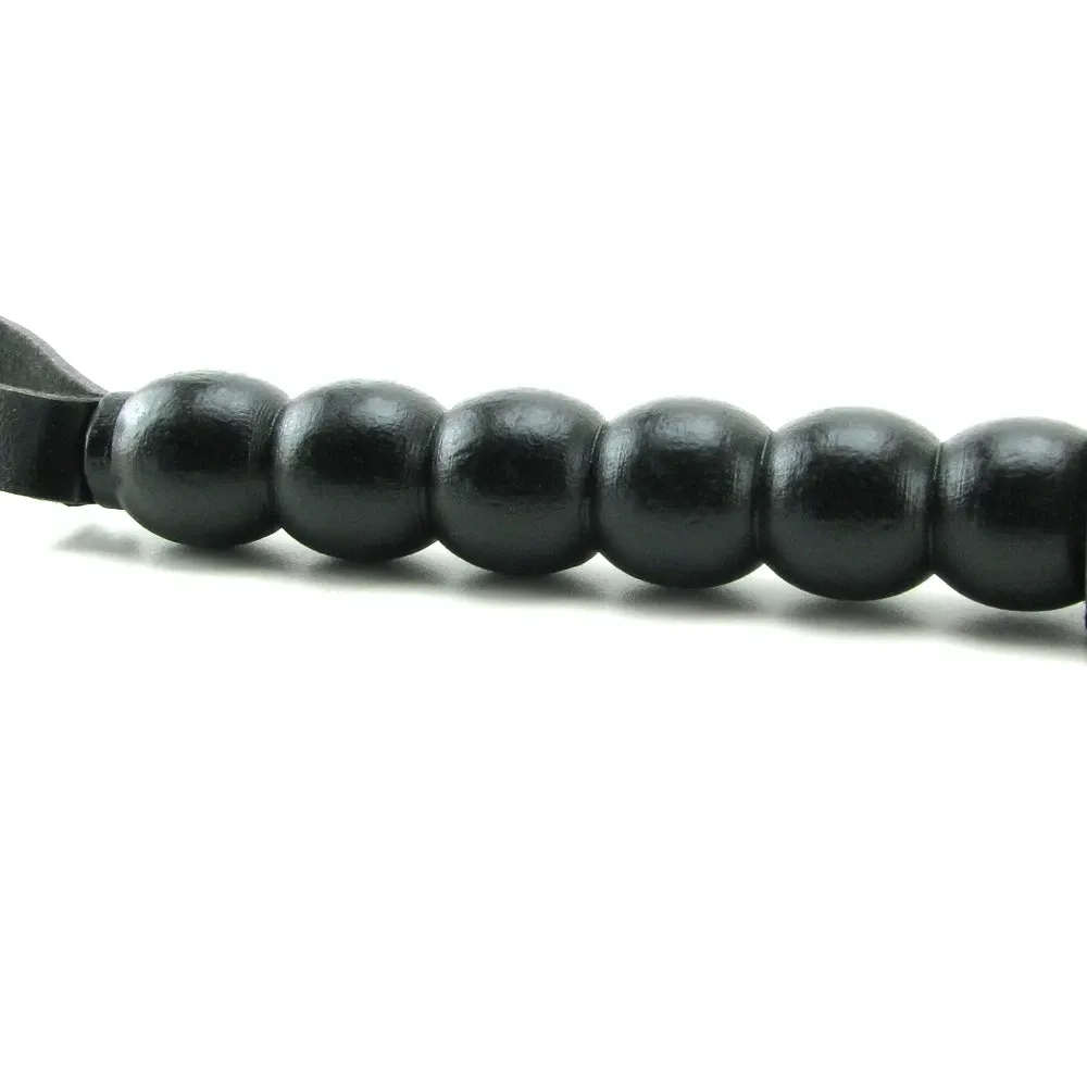 The Beaded Cat-o-Nine Tails from Pipedream is a dreamy toy for any playful BDSM enthusiast, from the beginner to the connoisseur. This mid sized flogger is sturdy and well balanced, delivering a good amount of sting if handled right, and also providing a teasing, gentle touch for anyone just starting out with this kind of play. A beaded, easy grip handle is has an attached wrist cord for perfect control, and the black fall is made of tons of square cut strands in a firm leather-feeling material. At just over 16 inches long, this whip lets your partner feel the sting from farther away, and it folds up nicely for easy travel.