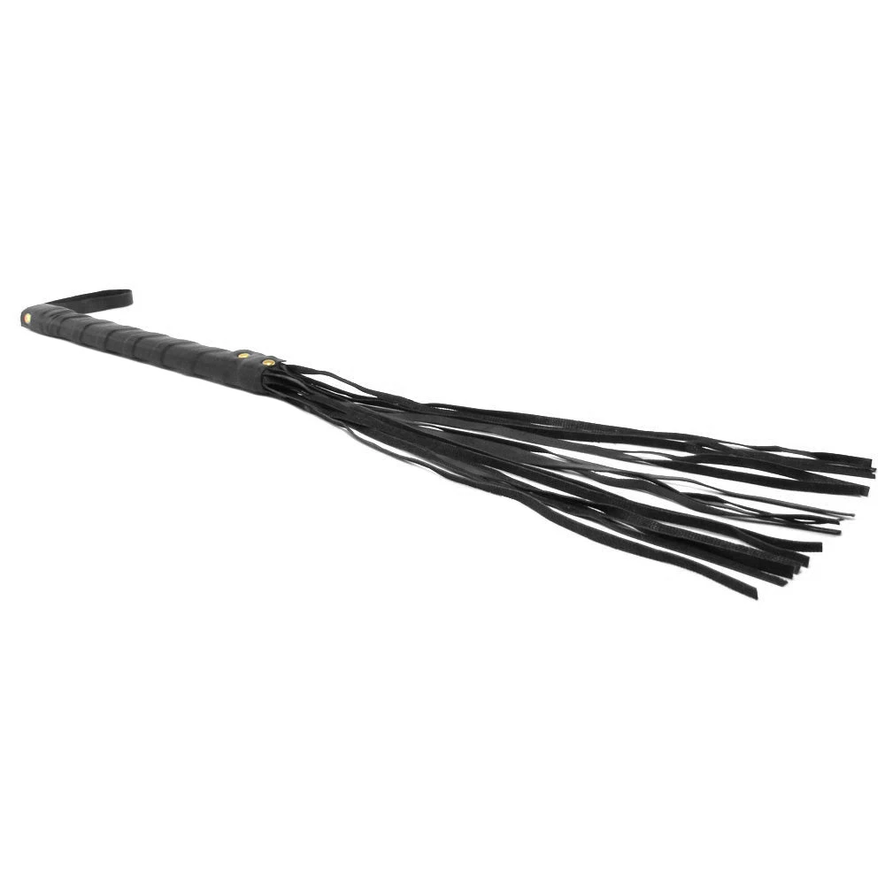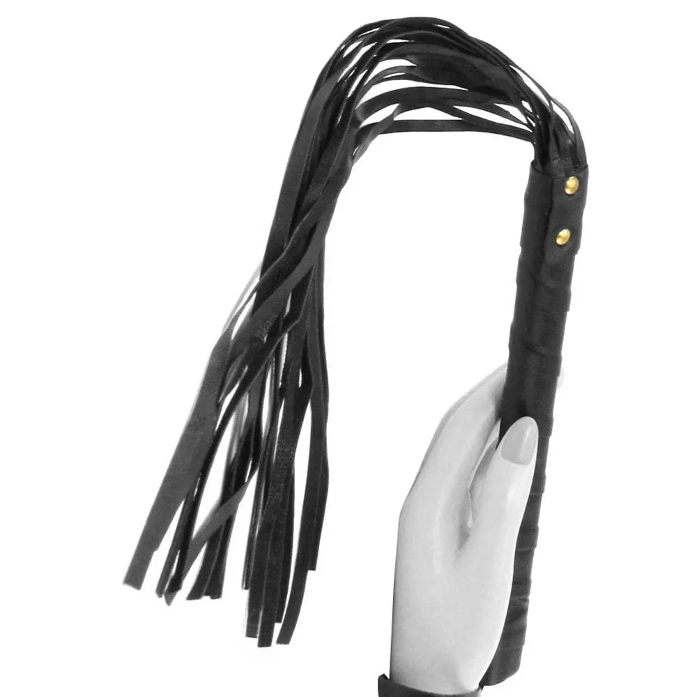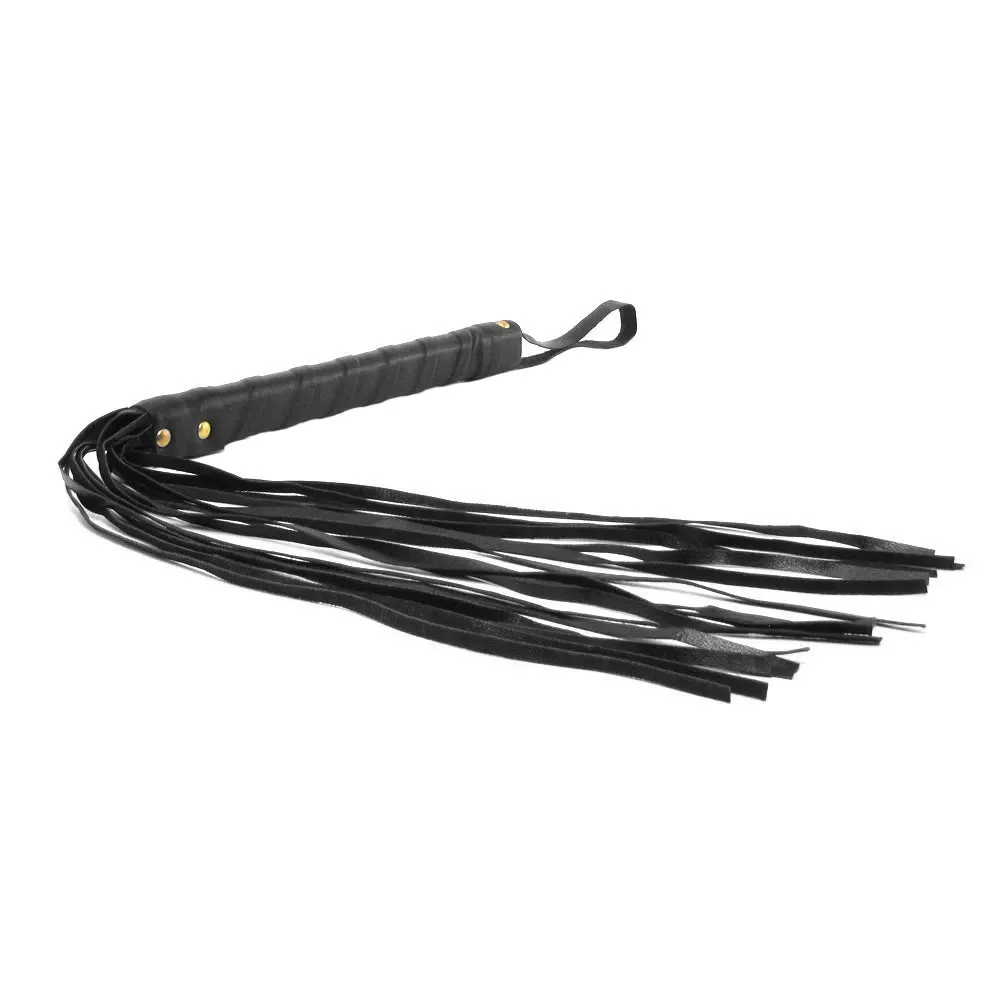 A good handful of leatherette strands are anchored securely to a firm wrapped handle that allows for precision maneuvering, tickling and teasing, or more enthusiastic flicks. A looped cord at the end of the handle helps with control even more, keeping the 20 inch (50.8cm) Flogger close throughout playtime.