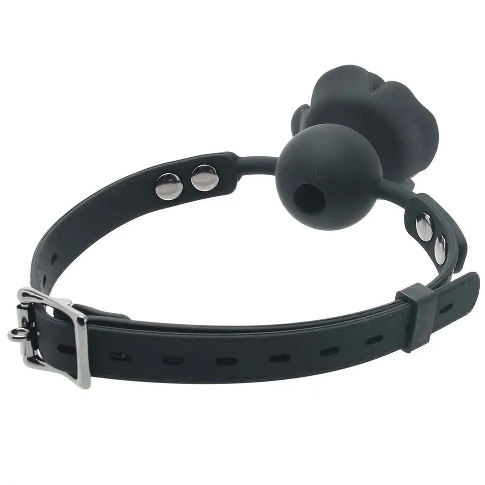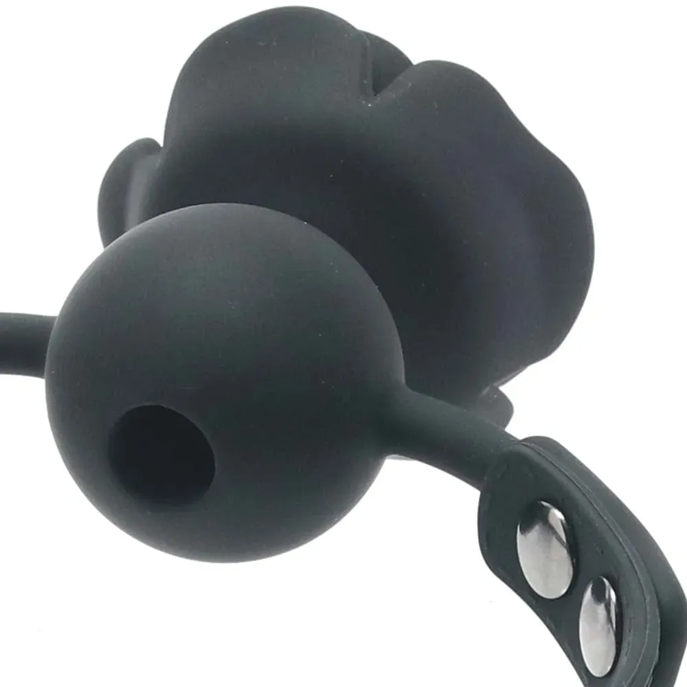 Not only does the Forbidden Removable Rose Gag look fantastic, it'll also keep you or a partner from spitting, biting, talking back and generally orally disobeying. Buckle up the silicone strap, positioning the also-silicone ball gag portion of the Rose in their mouth. This is fun: You can pop off the bloom to reveal a classic 1.75"/4.5cm ball with a perforated (breathable) centre if you/they like.
