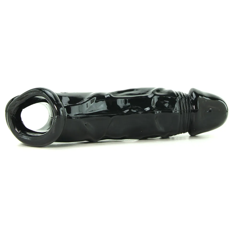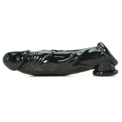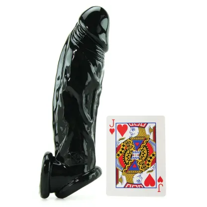 Supple and plush, the dramatically veined black jelly Tool is shaped into a lifelike phallus complete with a big bulbous head. Slide it over the penis when extra length, thickness and stamina is desired, the supple material fully surrounds the cock in question, lending extra inches- as it covers the sensitive tip completely, marathon sex is a given. A unique base naturally provides lots of support, the soft-edged opening at Tool's bottom slips over the testicles, separating the shaft and balls for a unique stretching sensation.