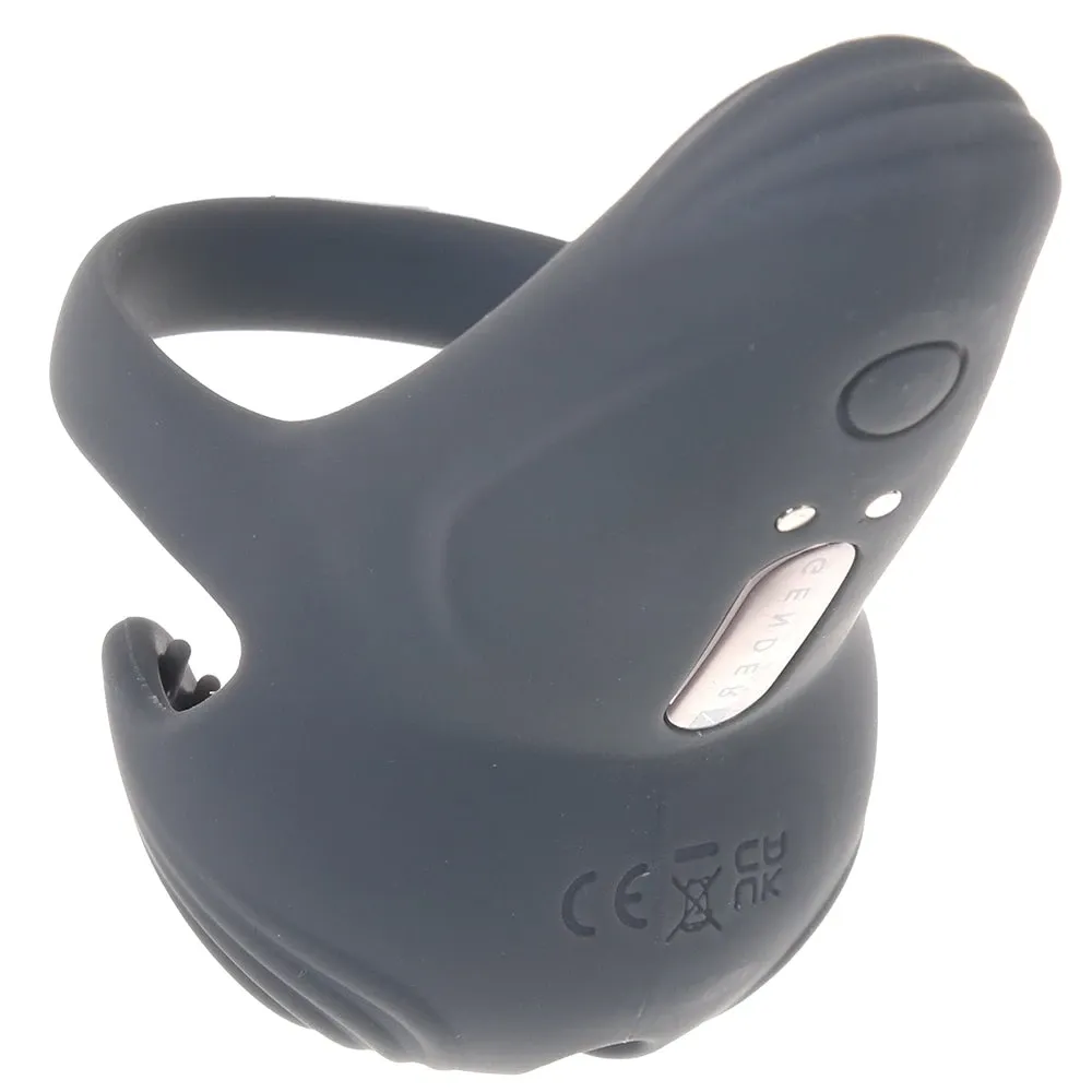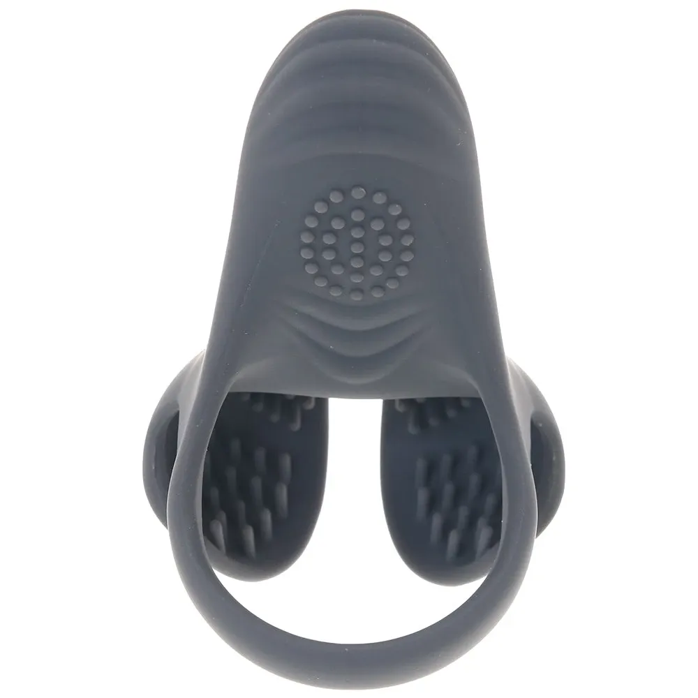 Slipping over your/your partner's shaft, a strap-on, or another beloved penetrator, the Undercarriage ring holds tight to help reign in a hard-on - if a penis is in play. Regardless, the big vibrating wedge to one side and the soft, flexible, textured cups on the other are all ready to add tons more sensation, stimulation, and overall feel-goodness to the scene. Position the Undercarriage in any way that works for you and your partner.