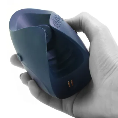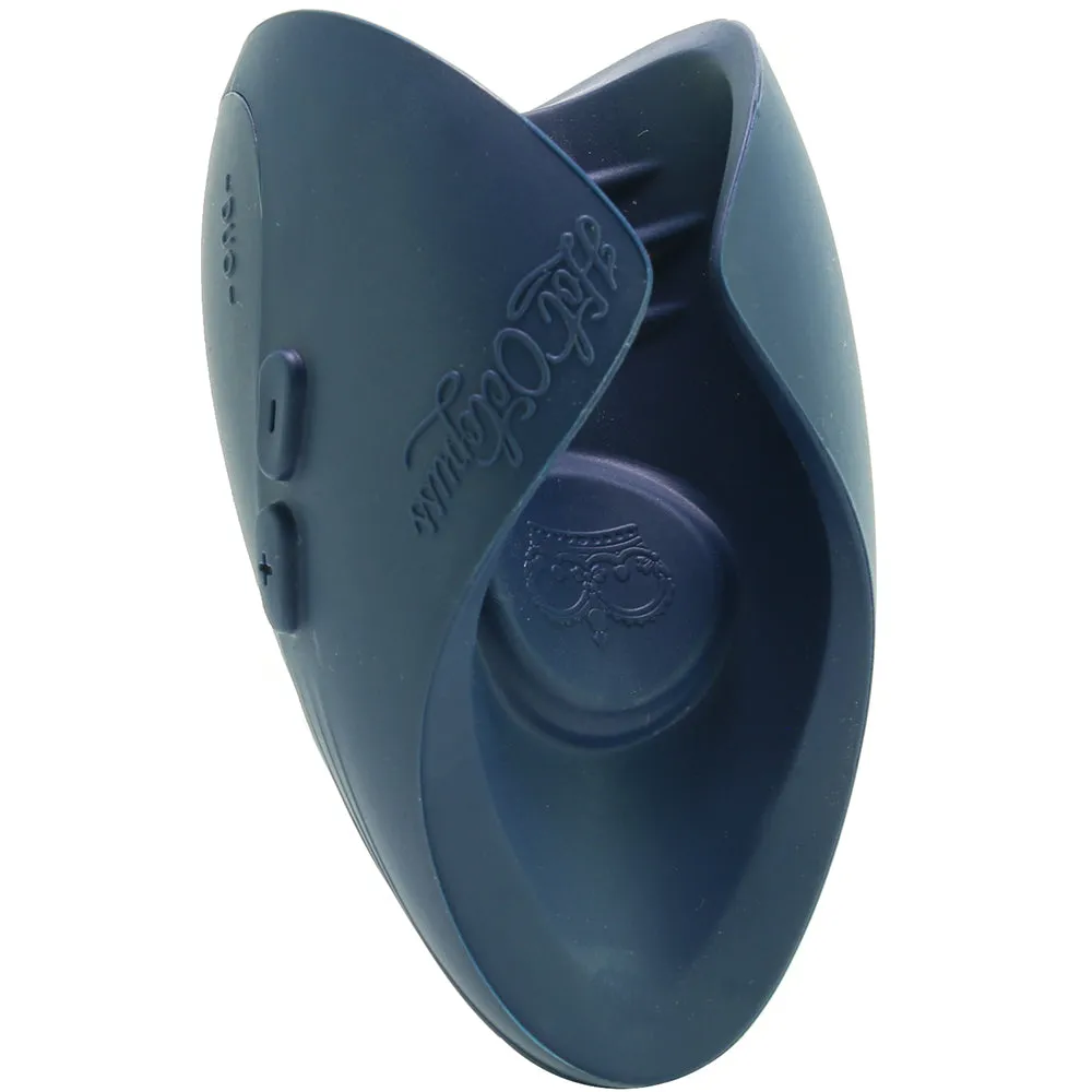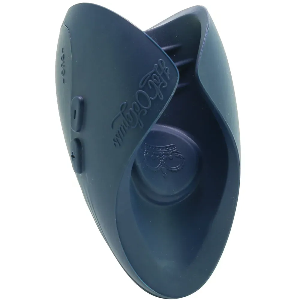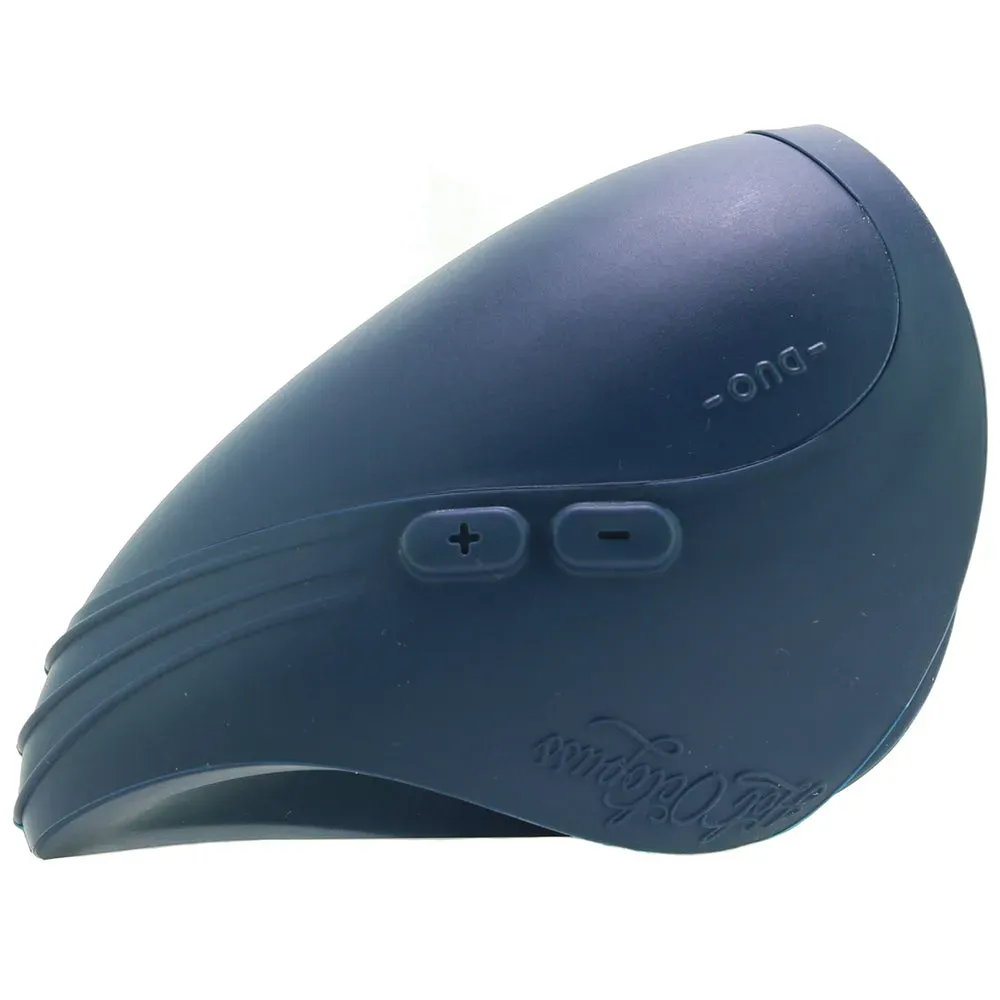 Before we get into the Duo's VERY impressive vibration functions, let's talk about the totally unique design. Folded into a curvy open-faced chamber with two soft silicone wings curling up from either side, the Duo was created to fit easily in your or your handy playmate's palm and also to fit cocks of all shapes and sizes. You can use it flaccid or erect for stroking, frenulum stimulation, or as a super-powered couples ring that provides more than enough grind-worthy surface area for your partner. Hands-free orgasm? Please!