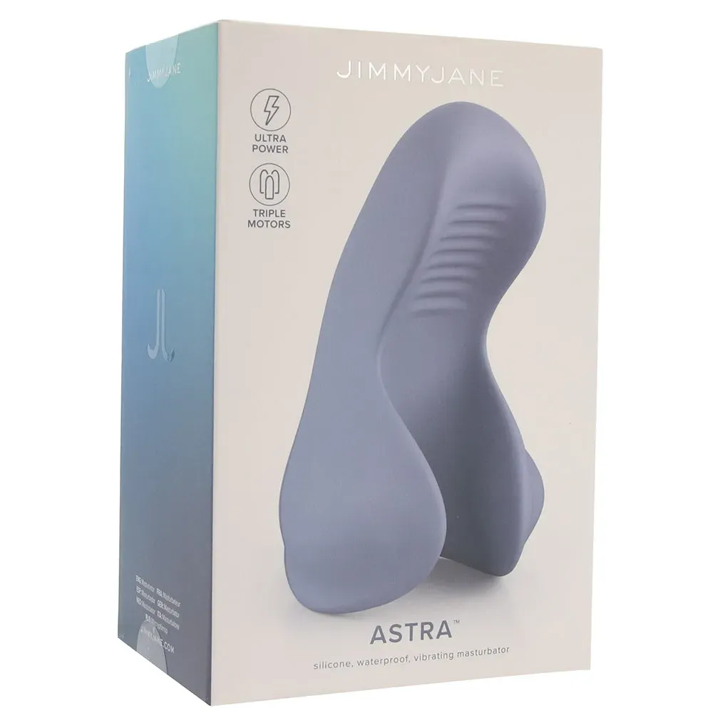 First off, the all-silicone Astra comes curled into an open-faced chamber with soft-yet-firm wing massagers curling up from either side. Each has its very own vibrating motor inside, which guarantees full-coverage sensation as you stroke - or hold still. Inside, placed to pulse and throb against your/their tip, yet another motor works its stimulating magic. One button controls ten perfectly synced, VERY powerful vibration modes.