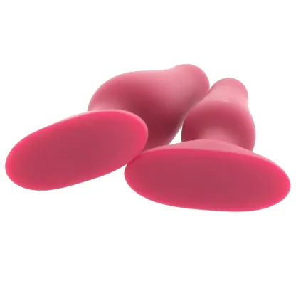 Classic in shape, the sleeker tip of each pretty deep pink plug swells gradually outward to max width near the bottom. A nice long neck helps hold your plug of choice in place while a big base helps protect against any too-deep slips.