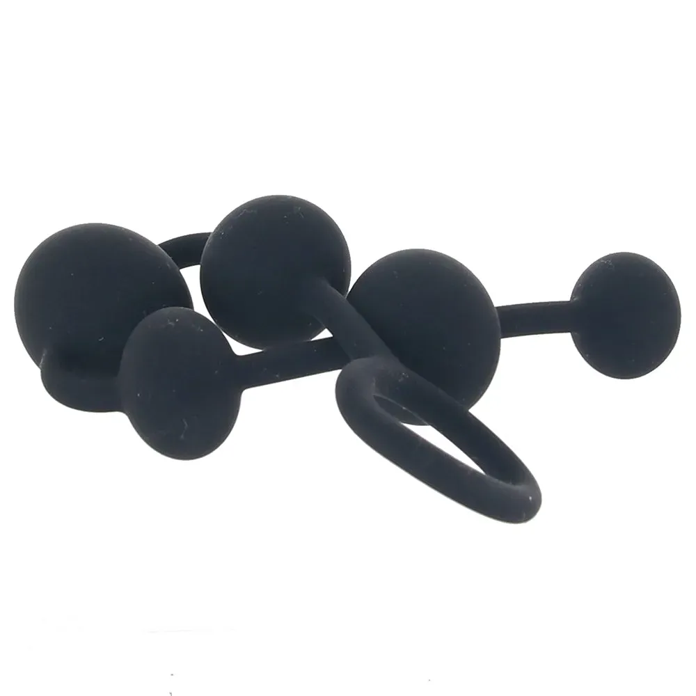 Extra manageable, ultra silky and super-flexible, these unique, oval Beads offer you five sexy swells to play with. Small(er) at the tip, the Beads feature a not-entirely-predictable size graduation that'll keep you or your playmate on your/their toes. The second bead is slightly larger than the first, the third is small and the fourth and fifth follow suit. Needless to say, there will be plenty of pleasurable 'pop' action going on. A big ringed handle makes removal, re-positioning and sexy tugs/twists a breeze.