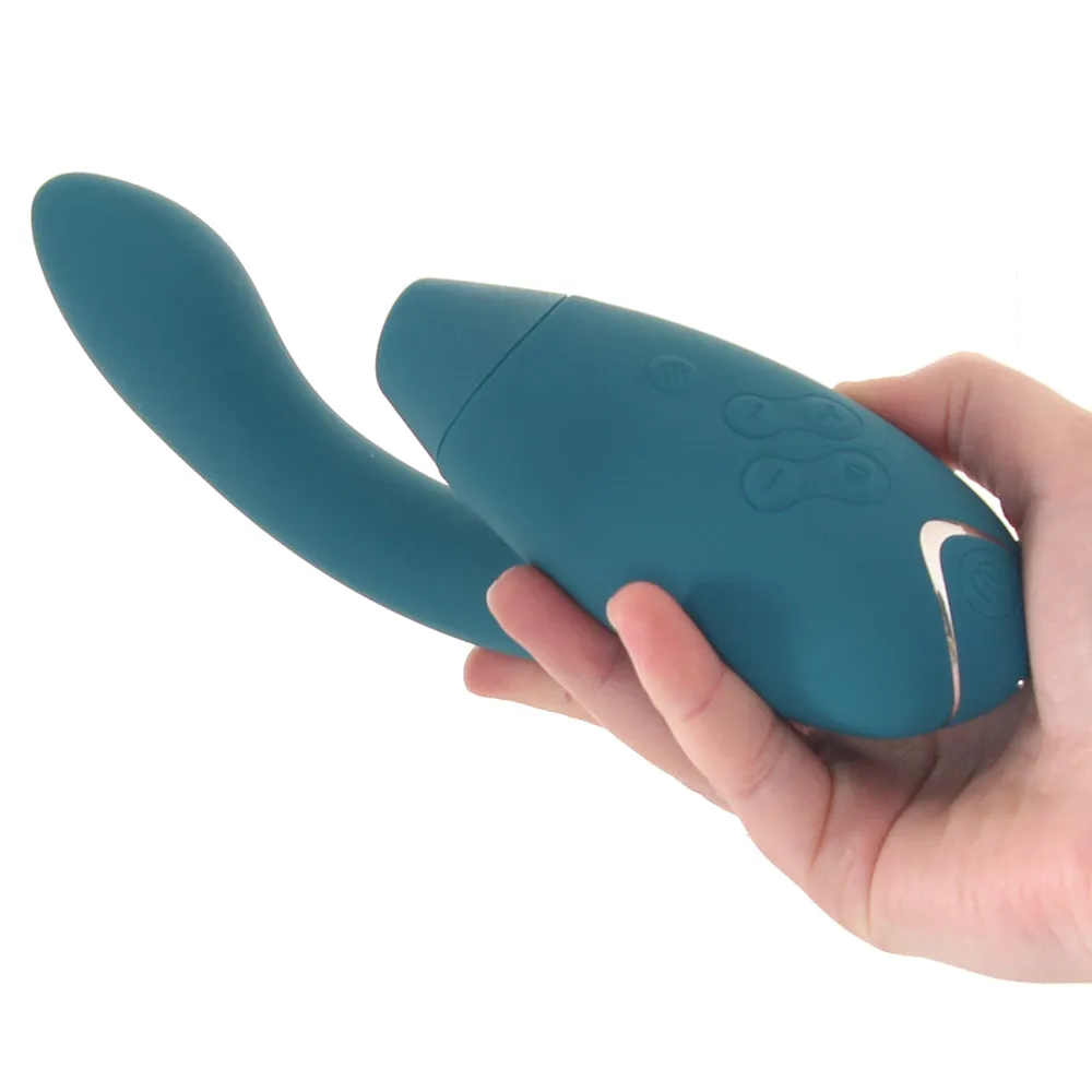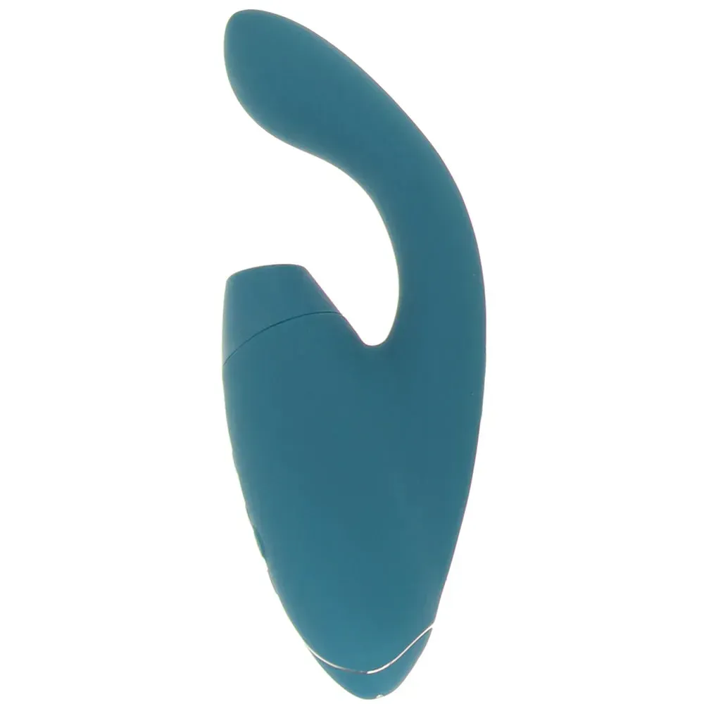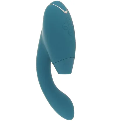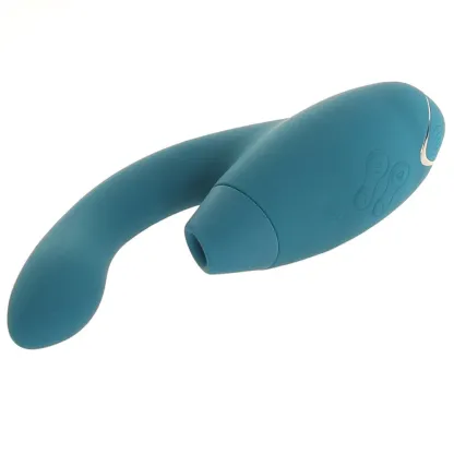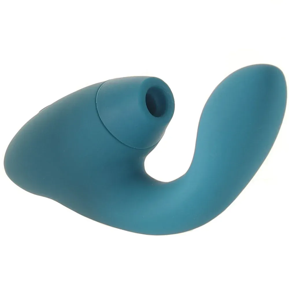 First things first. The fully silicone Duo 2 is extra curvy and designed for streamlined pleasure. A silky, scooped-out Pleasure Air tip that completely encompassing your or their clit and other outer sweet spots sits above an deep-reaching vibrating penetrator. The Duo 2 comes pre-packed with fourteen intensities of touchless Pleasure Air sensation ranging from the softest tickle to a full-on throb, plus another fourteen of screamingly powerful inner vibration. You'll be able to enjoy internal vibration or clit suction solo any time you'd like (they're controlled separately) but we highly recommend pairing them up!